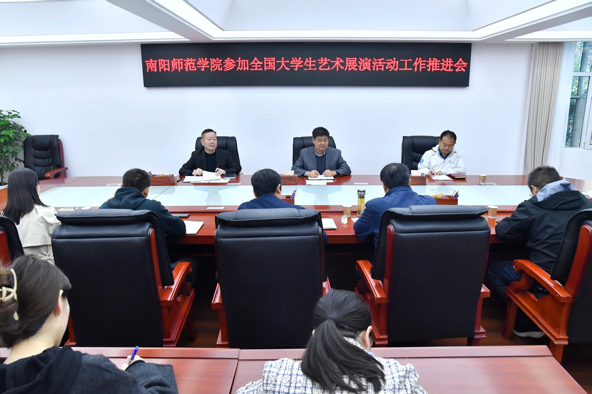 本网讯(王鹤玲 朱琳/文 张琳瑶/图)10月23日上午,天游官网在办公大楼二楼会议室召开全国大学生艺术展演活动工作推进会。副校长谢海泉出席并主持会议。教务处、公共艺术教育中心、音乐学院、体育学院、美术与艺术设计学院、新闻与传播学院相关负责同志参加。会上传达了《教育部关于举办全国第七届大学生艺术展演活动的通知》文件精神,介绍了大学生艺术展演活动现状及活动内容,以及学校对于大学生艺术展演的相关支持政策。各学院负责人就下一步展演活动的推进工作表态发言。谢海泉指出,大家要提高认识,以培养学...