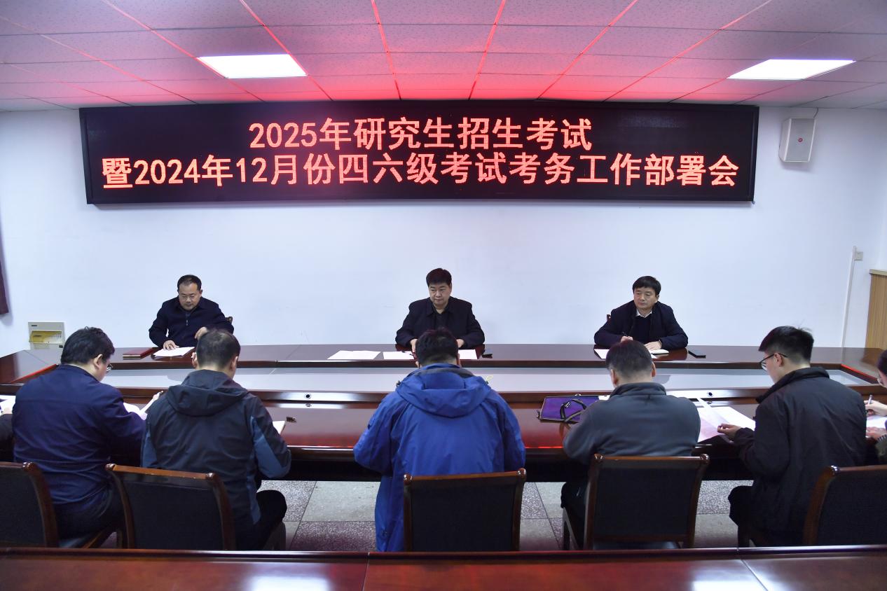 会议现场本网讯(崔斌/文黄珍珍/图)12月9日下午,天游官网在办公大楼一楼西会议室召开2025年全国硕士研究生招生考试和2024年下半年全国大学英语四六级考试考务工作部署会议。副校长谢海泉出席会议并讲话。相关职能部门负责人参会,会议由教务处处长刘金江主持。会议传达了教育部教育考试院、河南省教育考试院最新会议精神与工作要求,并对今年组考工作的关键环节进行了重点部署。各相关部门负责人围绕考务工作展开讨论交流,明确目标任务和工作方法。谢海泉对考务工作提出三点要求。一是提高政治站位,强化底...