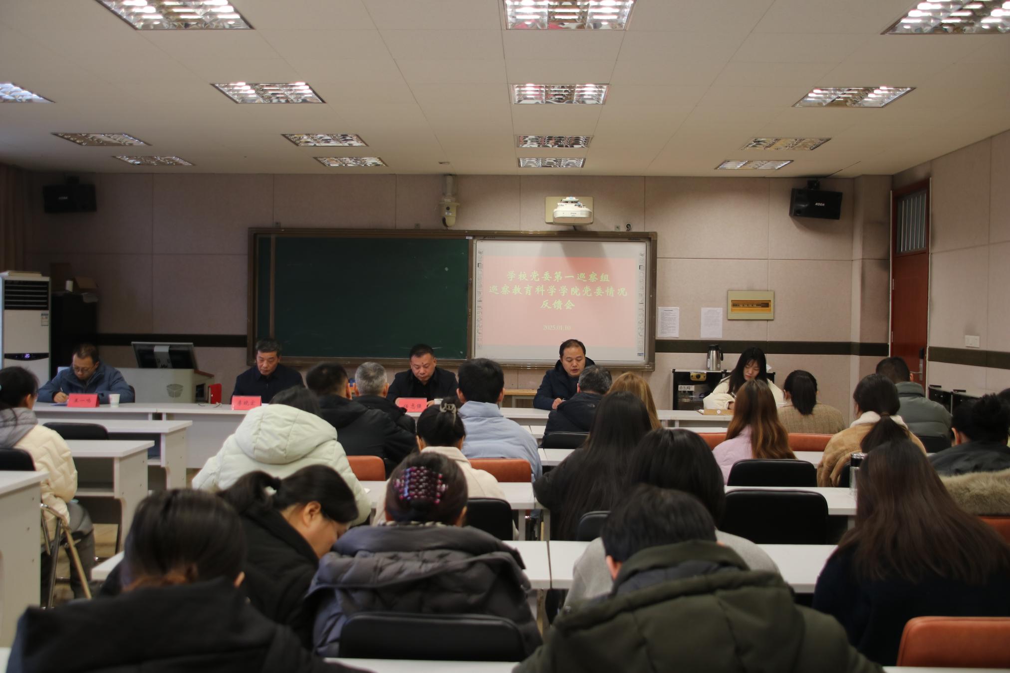 1巡察反馈现场2巡察反馈现场3巡察反馈现场4巡察反馈现场本网讯(通讯员 赵海洋)按照学校党委巡察工作部署,1月13-15日,第四轮校内巡察党委四个巡察组通过“一对一”反馈和集中反馈的方式,分别向教育科学学院党委、物理与电子工程学院党委、法学院党委、音乐学院党委进行了巡察情况反馈。各巡察组组长认真传达了党委书记、巡察工作领导小组组长张宝锋在听取巡察工作汇报时的讲话精神,并向被巡察党组织反馈了巡察情况。反馈指出,被巡察党组织坚持以习近平新时代中国特色社会主义思想为指导,深入学习贯彻...