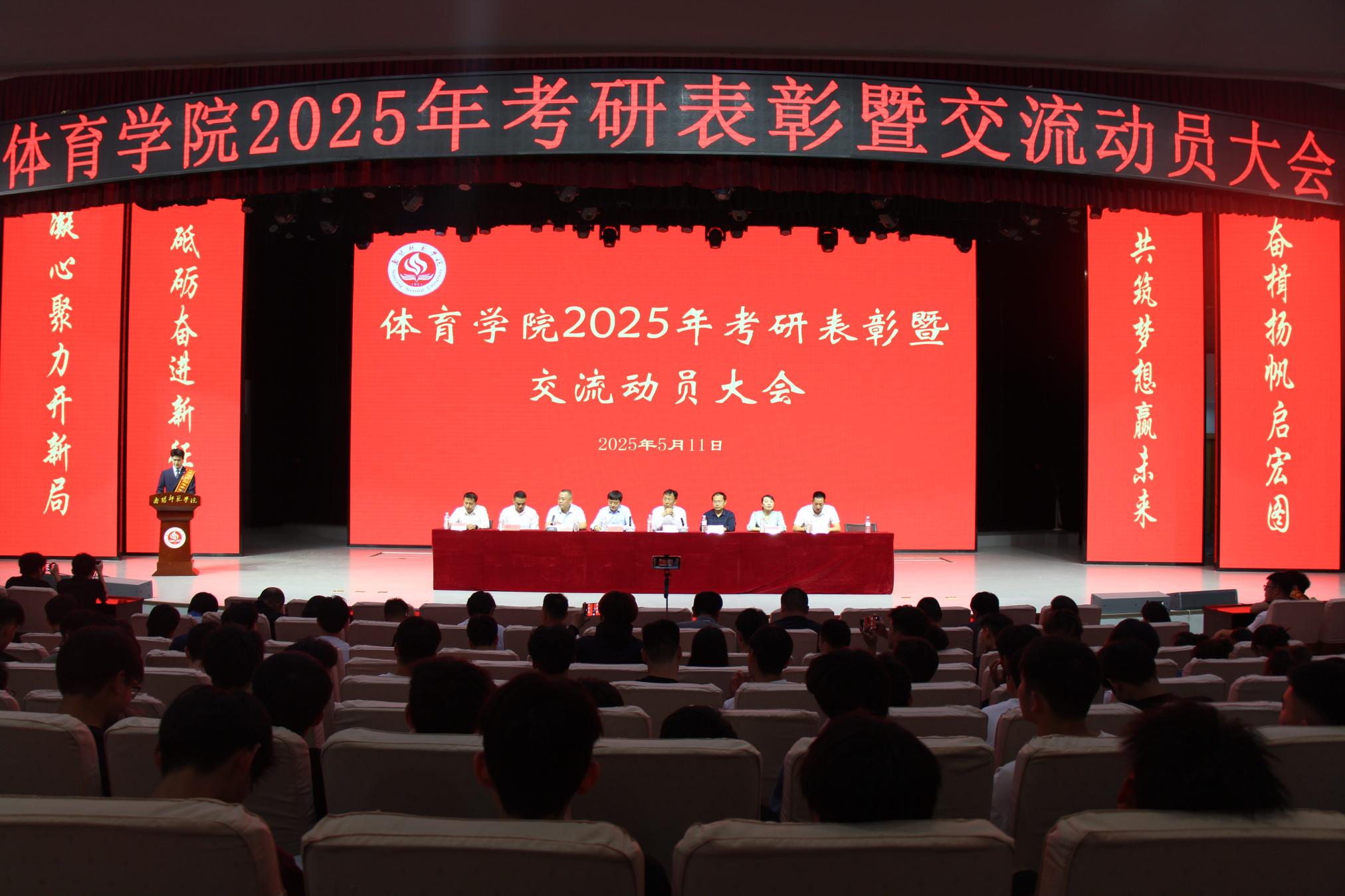 1活动现场2表彰现场3活动现场本网讯(佘清孔冲/文张成果/图)为表彰先进、促进交流,增强归属感与凝聚力,营造积极奋进的学习氛围,5月11日晚,体育学院在中区音乐厅举行考研表彰暨交流动员活动。副校长刘金江、教务处相关负责同志,体育学院全体处科级干部,2025届考取研究生学生及2026届全体学生参加此次活动。活动由体育学院党委书记曾鹏主持。体育学院院长雷波宣读了2025届考研录取名单,并结合“一抓二引三促”助考工作机制进行了动员讲话。优秀学生代表进行考研经验交流发言。副校长刘金江作...