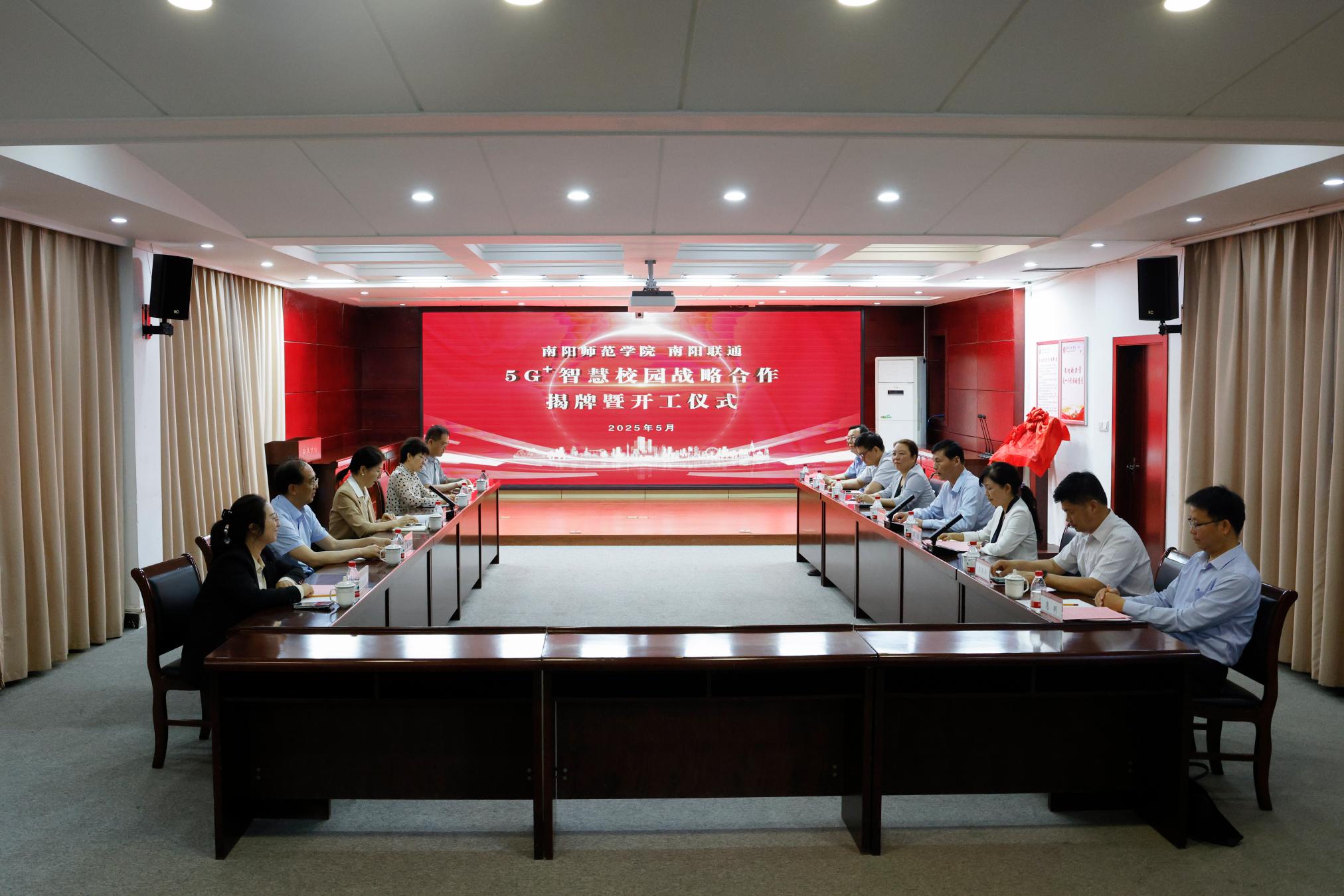 1会议现场2揭牌现场本网讯(王典/文 张琳瑶/图)5月8日下午,天游官网与中国联通南阳分公司5G﹢智慧校园战略合作揭牌暨开工仪式在办公大楼一楼东会议室举行。南阳联通公司党委委员、副总经理肜静,政企客户事业部经理李晓春等出席仪式。副校长熊新忠、王岩及国内合作处、信息化管理中心、创新创业学院、人工智能与软件工程学院等相关部门负责人参加。仪式由王岩主持。熊新忠致欢迎词,指出此次双方合作既是贯彻落实国家教育现代化战略部署的具体行动,也是天游官网推进数智校园建设水平、提升科技创新能力的重要举措。...