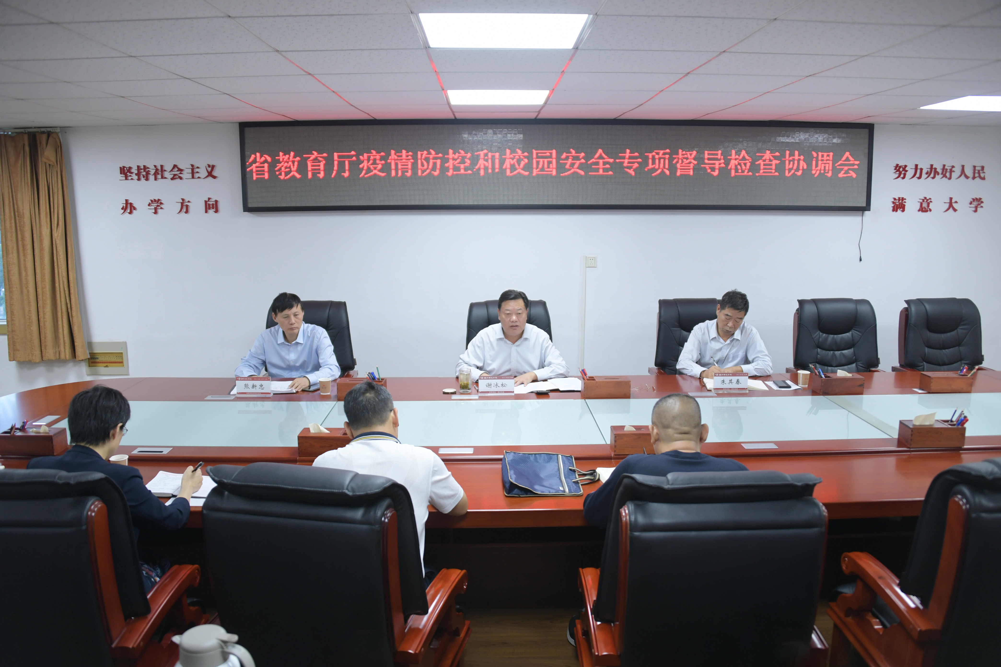 1.会议现场2.校党委副书记谢冰松讲话本网讯(陈欣/文 焦伟平/图)8月25日下午,党委学工部在大学生服务中心208办公室召开秋期开学疫情防控暨安全稳定工作会。校党委副书记谢冰松出席会议。学生处、校团委、心理健康教育与咨询中心负责同志,各学院党委副书记、学生处与武装部相关同志参加会议。会议由学工部部长裴保春主持。会上依次解读了秋期老生返校方案、开学后心理健康工作办法,通报了秋季征兵工作进展。会议强调,疫情防...