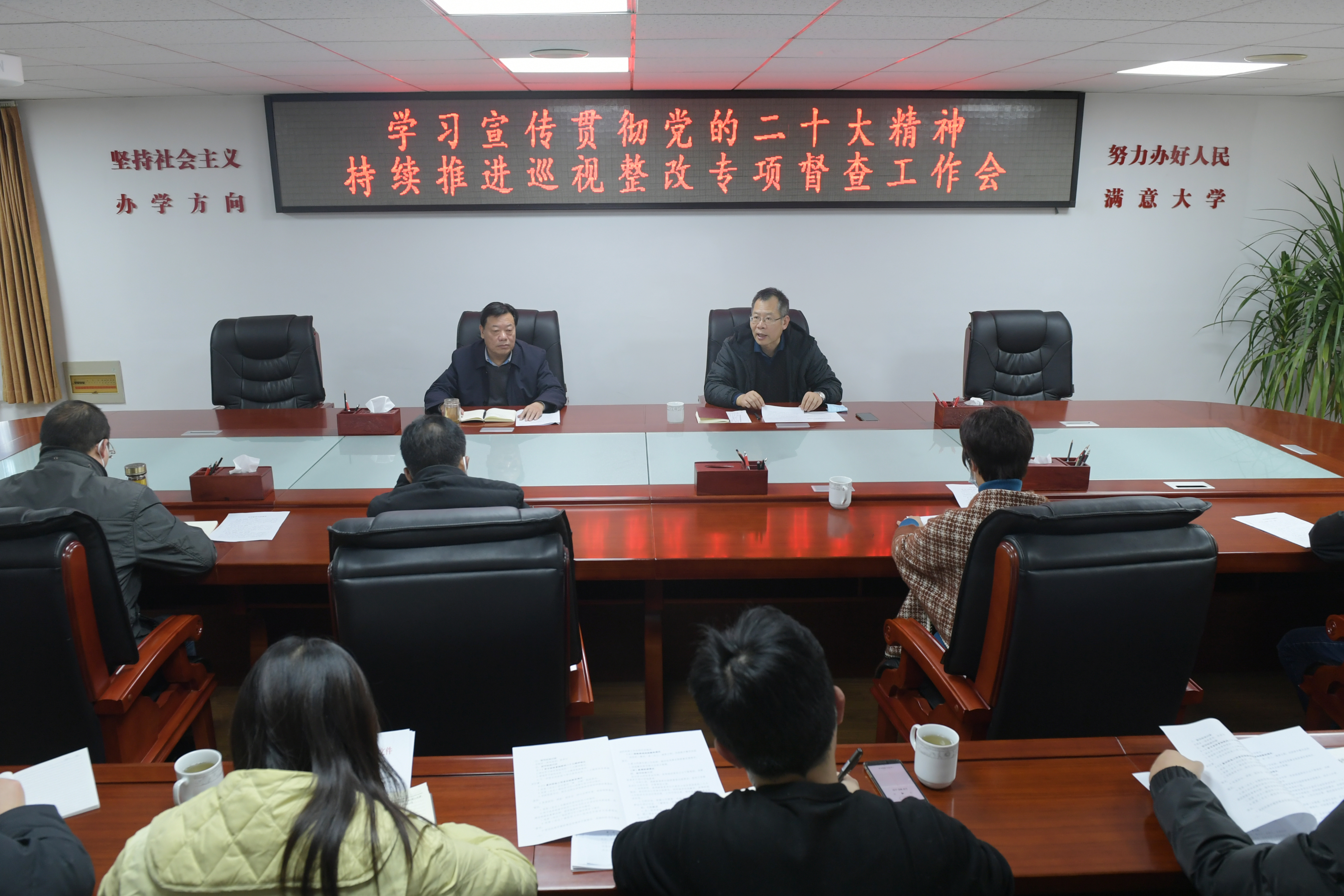 本网讯(唐旗/文 王宏洋/图)12月7日下午,天游官网在办公大楼三楼会议室召开学习宣传贯彻党的二十大精神、持续推进巡视整改专项督查工作会。校党委副书记谢冰松,纪委书记、监察专员于继武出席,全体在校督查组成员参加。于继武主持会议。于继武就督查工作提出要求,并对持续推进巡视整改情况提出具体督查措施,一是要认真学习研究巡视整改报告和整改台账,弄清整改内容,做到心中有数,看持续整改是否到位;二是要对整改台账的完...