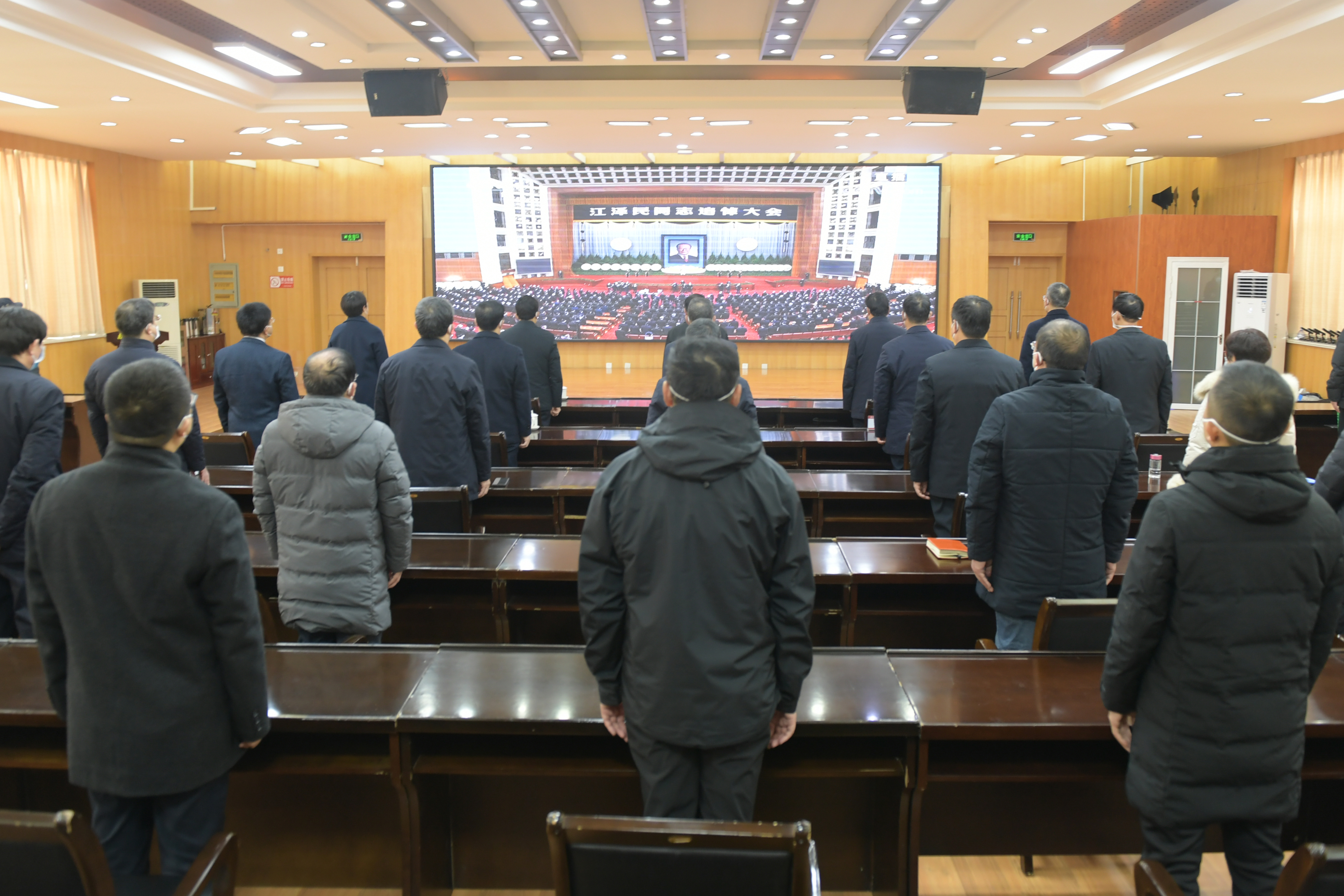 本网讯 12月6日上午10时,党中央、全国人大常委会、国务院、全国政协、中央军委在北京人民大会堂隆重举行江泽民同志追悼大会,天游ty8线路1线路2检测中心认真组织全校师生收听收看追悼大会现场直播,并降半旗志哀。学校党政领导班子成员、干部师生代表在科技大楼三楼会议室集中收看追悼大会,各二级党组织、各单位组织师生采取线上线下相结合方式收听收看追悼大会。