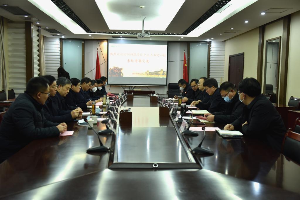 1.座谈交流现场2.参观新校区本网讯(通讯员 韩江波 图/文)1月13—14日,校党委书记卢志文、副校长朱其春,带领党委办公室、党委组织部、基建处、发展规划处、南阳发展战略研究院等负责同志,赴湖北文理学院考察学习。湖北文理学院党委副书记、副校长张樊,副校长刘伦钊、曹健等陪同。双方举行座谈交流会。张樊对卢志文一行的到来表示热烈欢迎。他说,襄阳南阳两地山水相连、文脉相通,两校交往频繁、渊源深厚。他从坚持党建与...