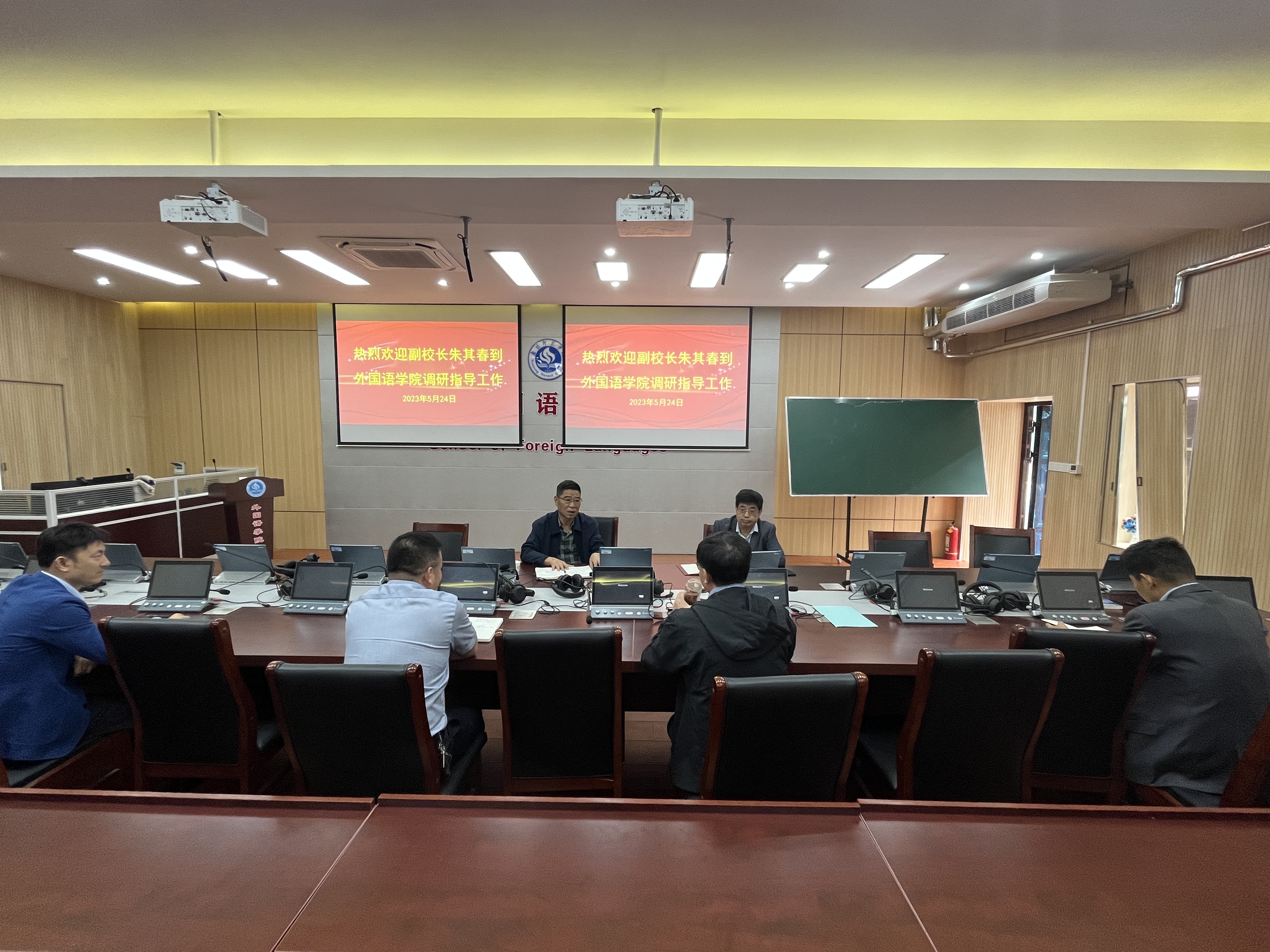 5月24日上午,副校长朱其春带领保卫处相关同志到外国语学院座谈调研。调研座谈会在115教室进行,外国语学院领导班子参加座谈。朱其春围绕开展学习贯彻习近平新时代中国特色社会主义思想主题教育、安全稳定、毕业生就业实习、大学生征兵等重点工作进行了详细座谈了解,听取并记录了大家的意见和建议,现场解答了大家工作的困惑和疑虑。朱其春对外国语学院的各项工作给予了充分肯定,并就相关...