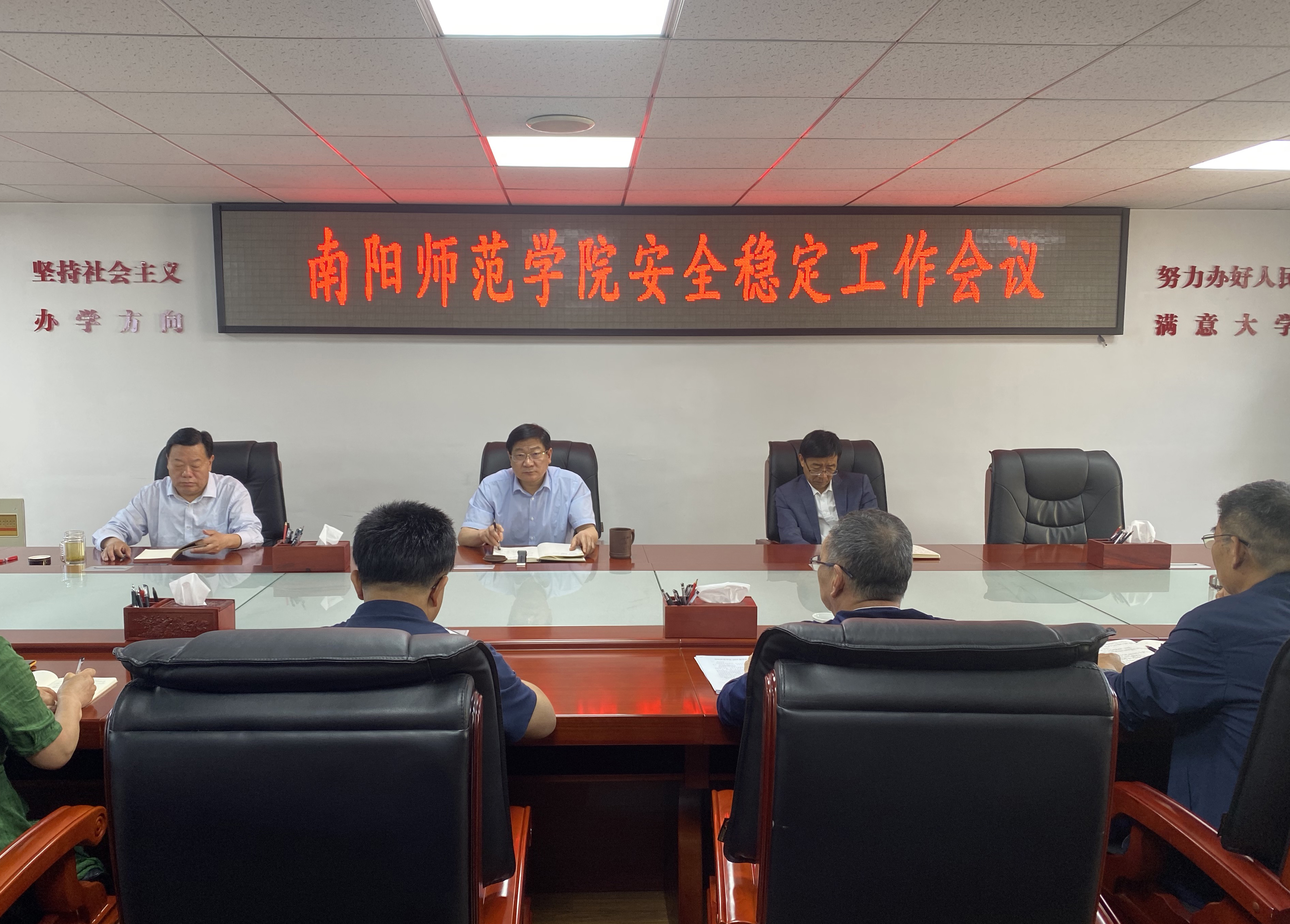 5月23日上午,天游官网在办公大楼三楼会议室召开安全稳定工作会议。校党委书记卢志文出席并主持会议。校长张宝锋,校党委副书记谢冰松,副校长周旗、朱其春、刘红林出席。相关单位负责同志参加。谢冰松分析了当前学校安全稳定面临的形势,对近期校园安全稳定工作进行了安排部署。张宝锋要求,各单位要清醒认识当前的形势,聚焦重点工作,加强组织领导,细化工作措施,强化责任落实...