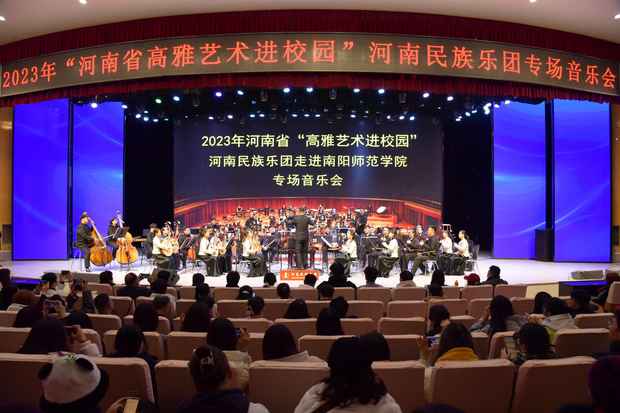 12月1日下午,由河南省教育厅、河南省文化和旅游厅、河南省财政厅共同主办的“高雅艺术进校园”河南民族乐团专场音乐会在天游官网音乐厅举行。副校长周旗、公共艺术教育中心负责同志出席。音乐会由民族管弦乐《山村节日》《彩云追月》拉开序幕,笛子独奏《扬鞭催马运粮忙》,民族管弦乐《豫调》《月亮代表我的心》《郎歌》,五重奏《平衡》,中国...
