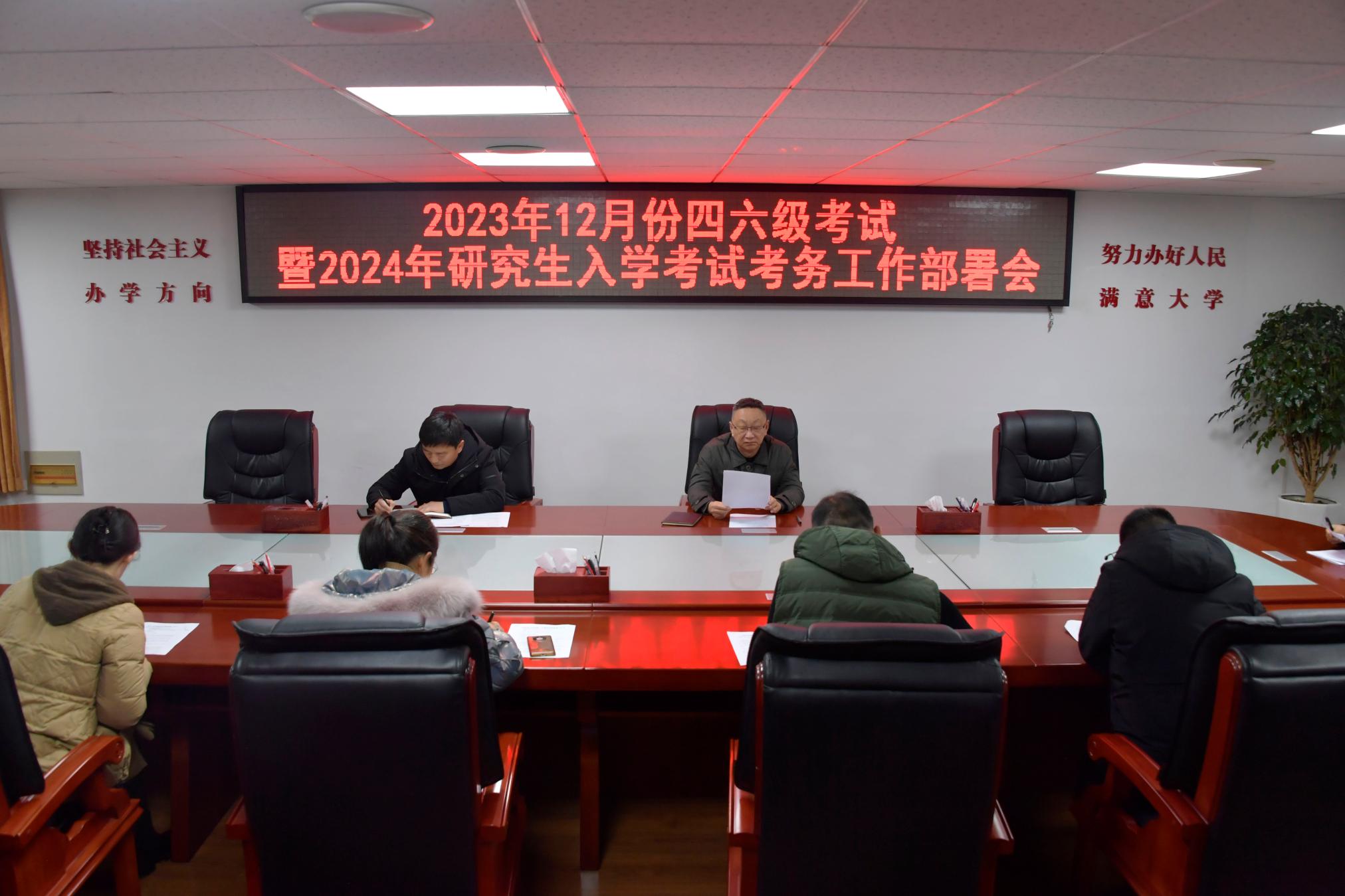 12月13日上午,2023年12月份英语四六级和2024年全国硕士研究生招生考试考点考务工作协调会在办公大楼三楼西会议室召开。副校长周旗,教务处、党办、院办等部门负责人参加会议。会议由教务处处长刘金江主持。会议传达了教育部考试中心、河南省教育考试院下发的有关两个考试指导文件的精神,安排部署了各职能部门相关考务工作。周旗就进一步做好两次考试考务工作提出三点要求。一...