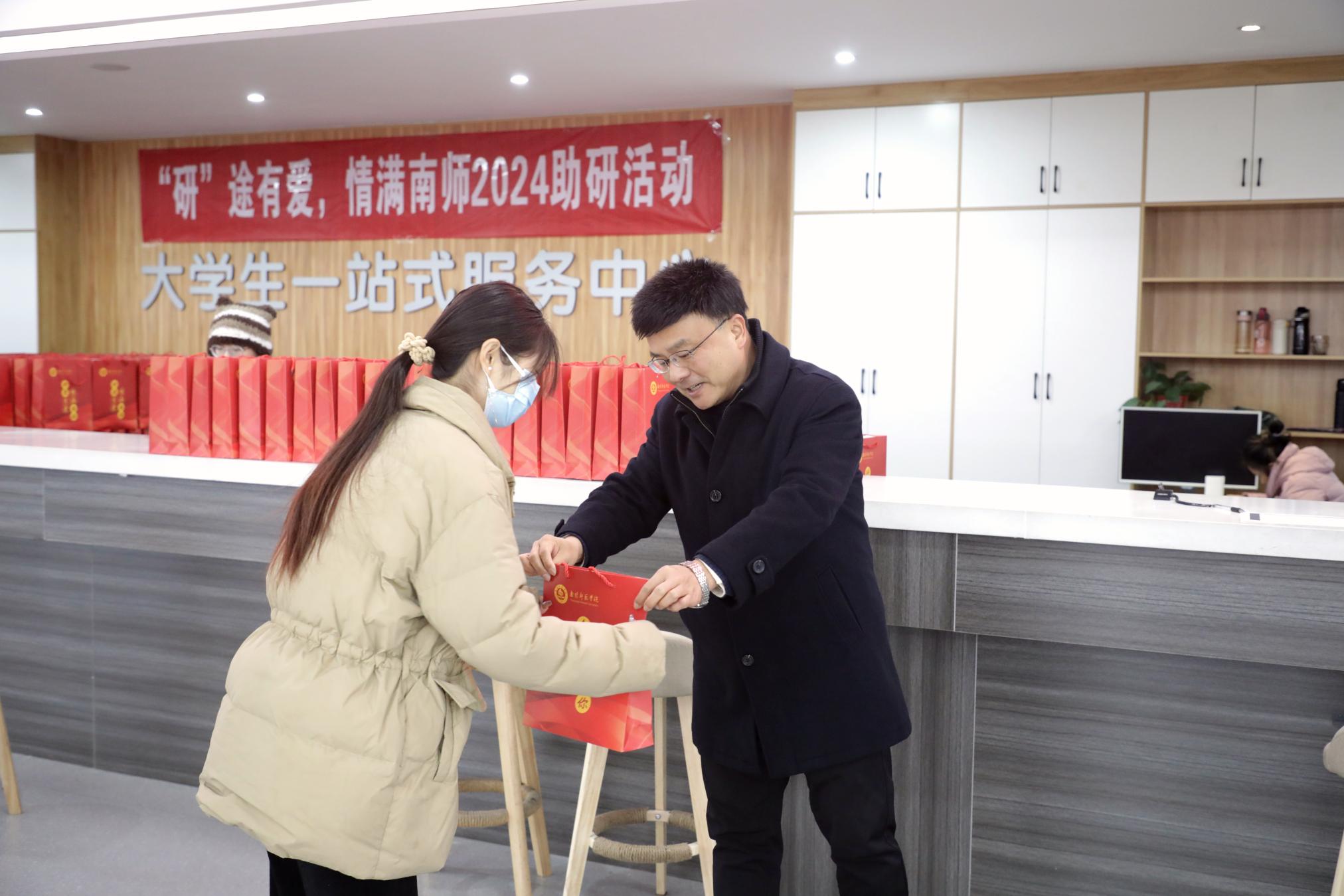 寒冬已至,“研”路花开。近日,为给考研学子们加油鼓劲,帮助他们缓解备考压力,天游官网组织开展“研途有爱,情满南师”2024系列暖心助研活动。12月18日上午,副校长刘红林到考研“加油包”发放现场,将蕴含南师美好祝福的礼包发放给学生们,并亲切询问各位学子在校学习和生活情况,细心叮嘱他们考研在即,要注意身体,放平心态,稳定发挥、沉着应考,祝愿他们取得优...