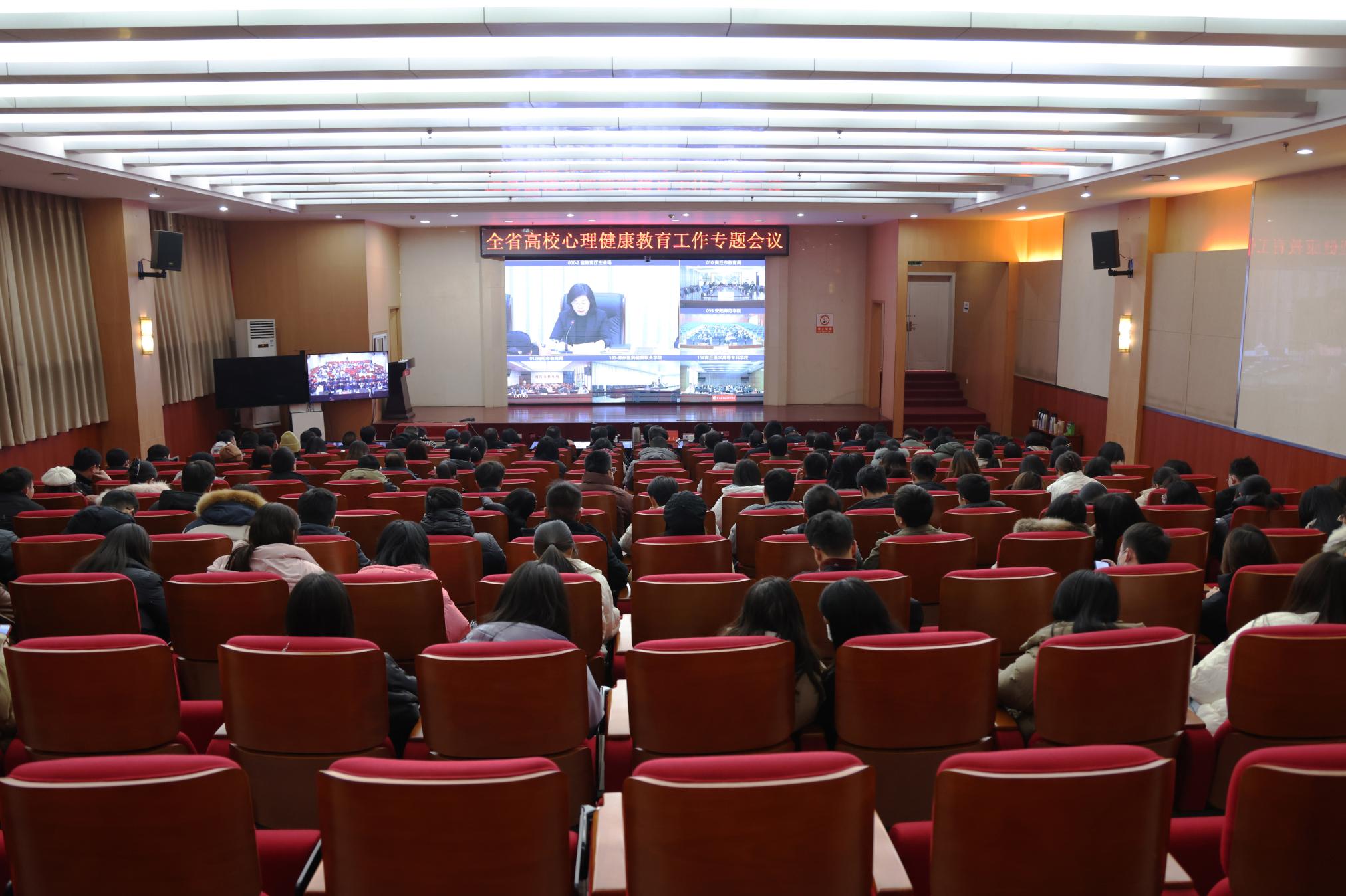 12月26日下午,河南省委教育工作领导小组组织召开全省高校心理健康教育工作专题会议。河南省委常委、组织部部长、教育工委书记王刚,省教育厅党组书记、厅长毛杰,省委教育工委专职副书记尹洪斌,省编办、省人社厅和省卫健委负责同志出席会议,省政府副秘书长赵学东主持会议。天游官网在西区图书馆一楼报告厅设置分会场,校长张宝锋,副校长罗永松、刘红林,...