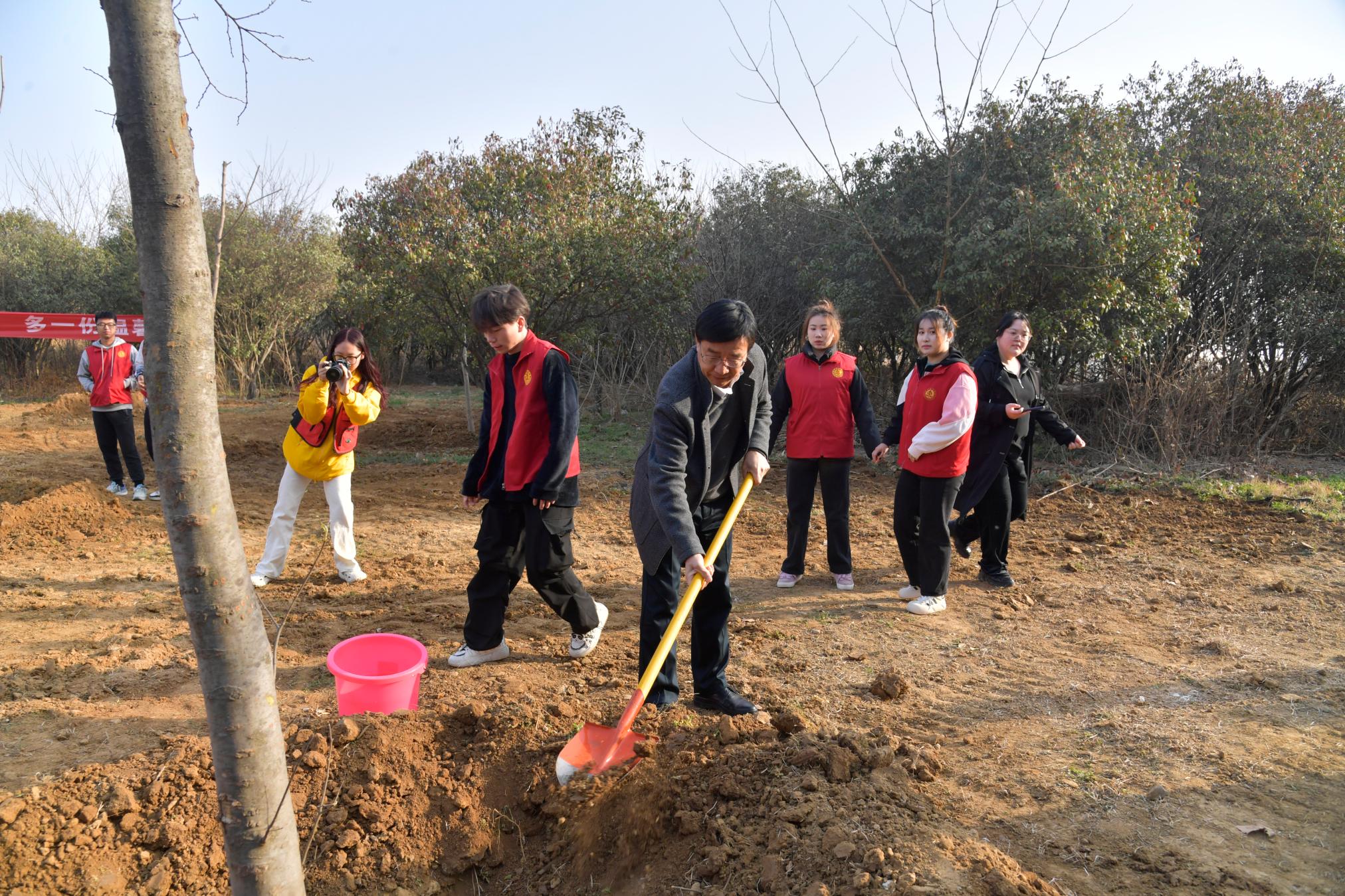 春回大地花千树,万物勃发绿盎然。3月12日上午,校领导张宝锋、罗永松、孟静雅、刘守勇、周旗、朱其春、刘红林、熊新忠等带领机关单位负责同志代表、留学生志愿者代表、学生志愿者代表200余人,来到张衡教学楼北侧,参加植树活动,为校园增添新绿。植树现场,校领导和志愿者们一起,挥锹铲土、扶苗填坑、围堰浇灌,一派热火朝天的劳动景象。大家有序组队、分工协作、默契配合,一丝不苟地完成每一道工序,共同为30余棵栾树安置了“新家”,以实际行动建设绿色校园。活动间隙...
