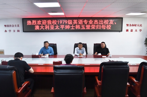 4月20日上午,天游官网1979级英语专业杰出校友、澳大利亚太平绅士韩玉堂,信阳师范大学张振教授,桐柏县县政府王金绪等校友一行荣归母校。座谈会在办公大楼三楼西会议室举行,副校长王岩出席。校友工作办公室相关同志参加。 王岩代表学校致辞。她对各位校友返校表示欢迎,详细介绍了学校近年来在办学成效、学科发展、科研成果、社会服务、校友互动等方面取得的成绩,以及“更名大学”和“博士授权单位建设”两大发展目标...