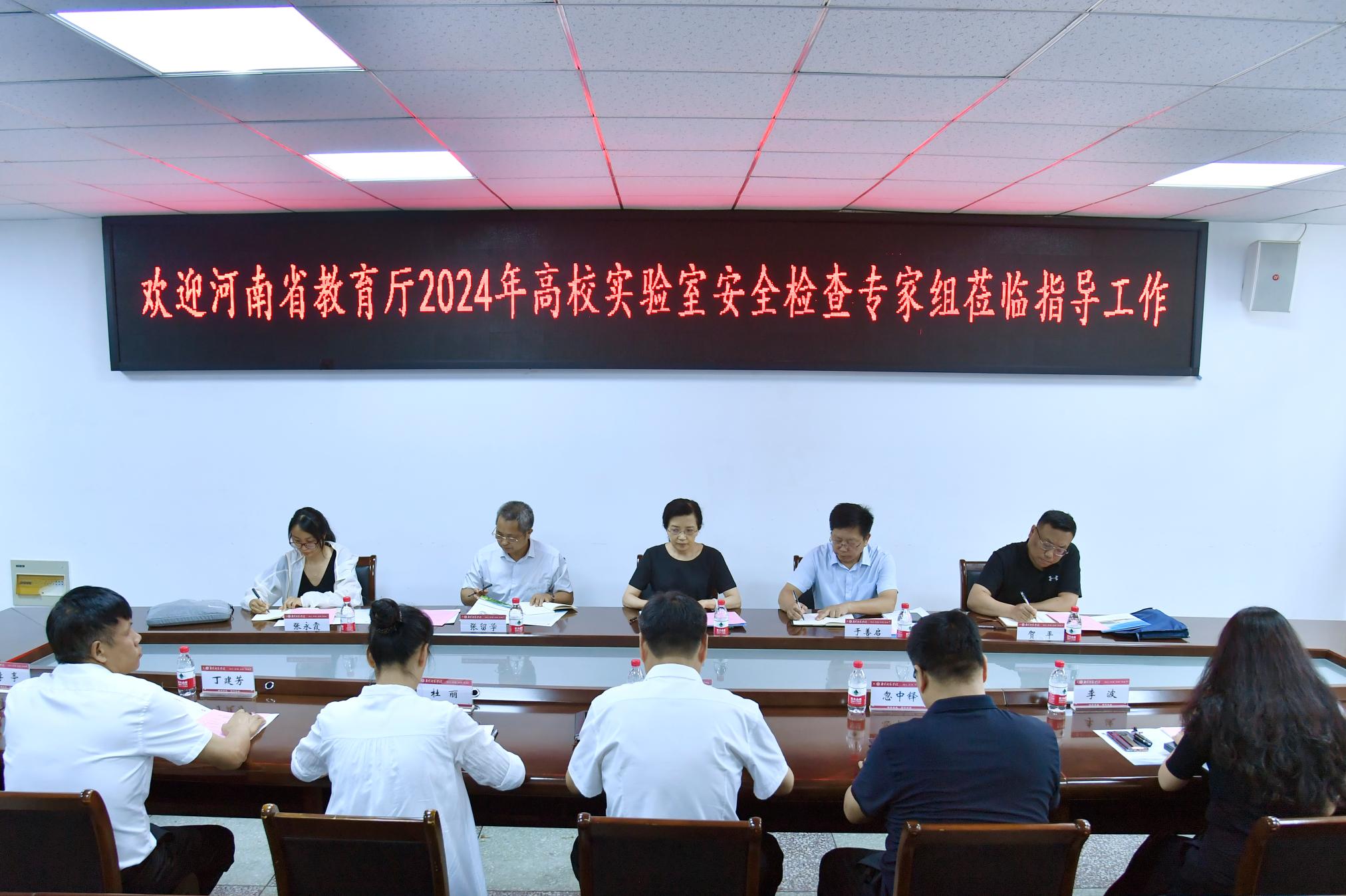 6月25日上午,2024年河南省高校实验室现场检查组以河南省高校实验室研究会副理事长、河南农业大学实验室与设备管理办公室杜莲珍主任为组长一行五人到天游官网进行实验室安全检查。安全检查汇报会在办公大楼一楼西会议室举行。天游官网副校长谢海泉出席并主持会议。科技处、保卫处、实验室管理处(分析测试中心)、后勤管理与服务中心、生命科学学院、化学与制药工程学院、水资源与现代农业学院负责同志等参加会议。谢海泉代表学校对检查组莅临指导表...