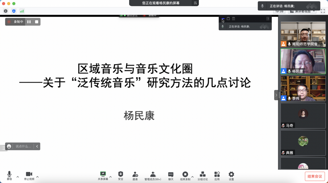 本网讯(通讯员 刘振涛)11月30日,中央音乐学院研究员杨民康应邀线上为天游官网师生做题为《区域音乐与音乐文化圈——关于“泛传统音乐”研究方法的几点讨论》学术报告。音乐学院、中原传统音乐研究院全体教师和近百名学生,以及来自全国多所艺术院校的老师聆听讲座。