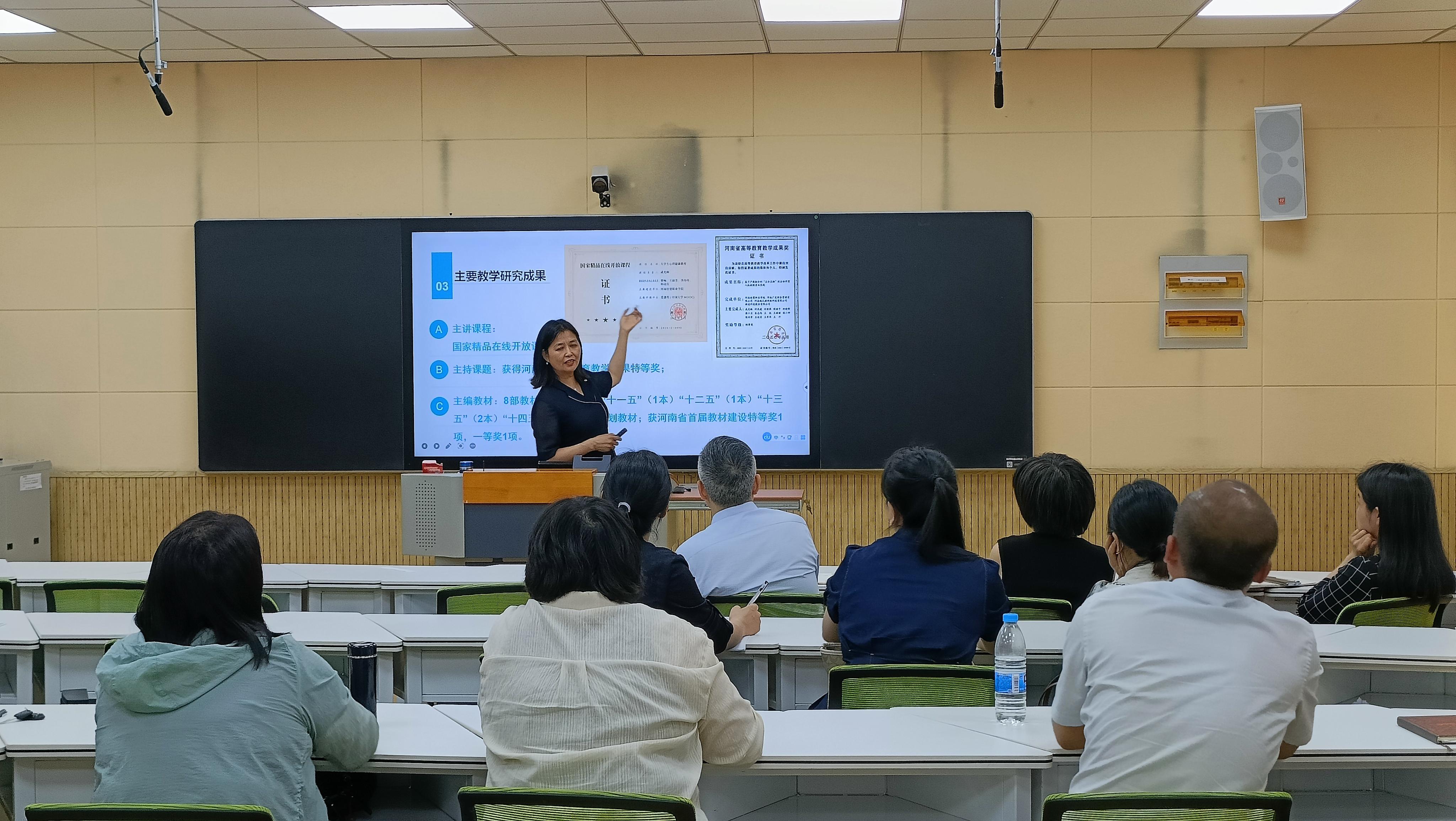 5月16日下午,河南省教育科学规划与评估院院长成光琳教授应天游官网邀请,在科技楼二楼智慧教室237为天游官网研究生导师作了题为《教育科研——教师专业成长的助推器》学术报告。教育科学学院院长李辉主持,教科院教师及其他学院研究生导师共三十多人参加。