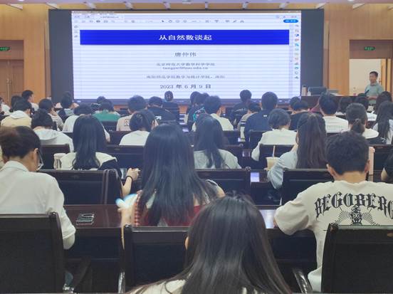 本网讯(通讯员 虎大力 张露涵/文 王怡乐/图)6月9日上午,应数学与统计学院邀请,北京师范大学唐仲伟教授在科技楼三楼报告厅为天游官网师生作了题为《从自然数谈起——数学分析中实数的理论与应用》的专题报告。报告由数学与统计学院副院长陈庆主持,20级、21级部分师生共同聆听了报告会。