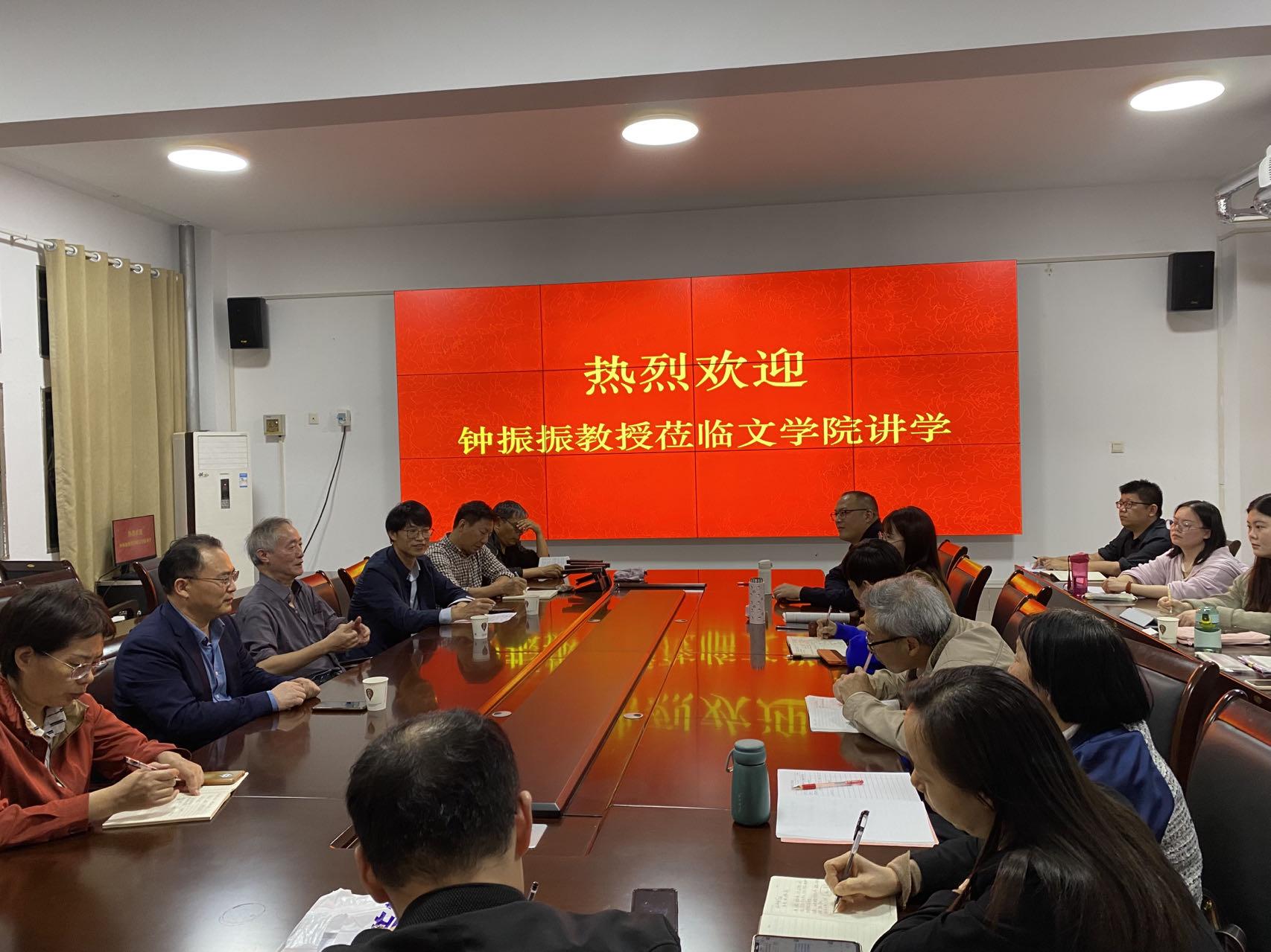 本网讯(通讯员 田煜)10月24日,应文学院邀请,南京师范大学文学院教授、清华大学特聘教授、著名词学专家钟振振先生来天游官网讲学。会议在文学院二楼会议室举行,社科处处长王春阳、文学院院长龚世学、古代文学教研室全体教师、拟申报2024年国家社科基金项目的老师及2023级部分研究生参加此次会议,会议由龚世学主持。