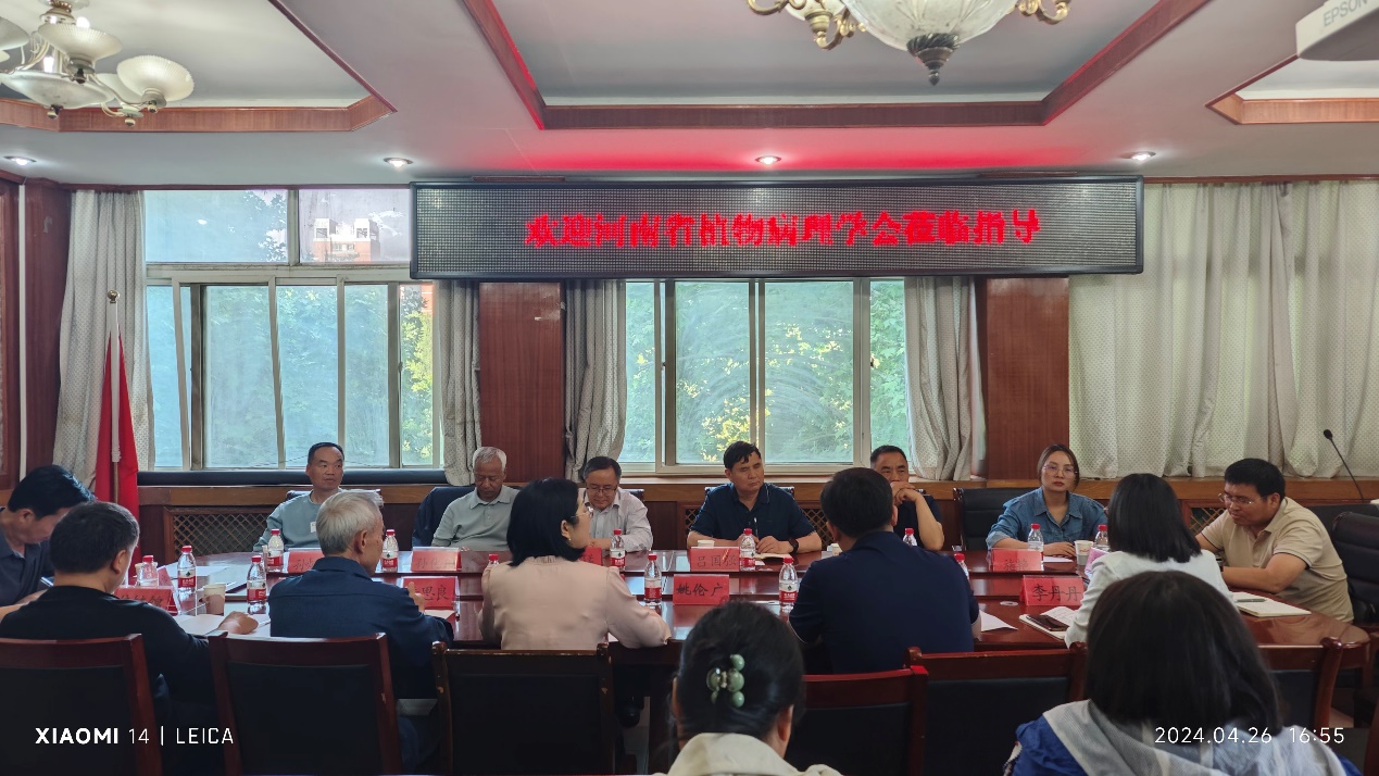 牛秋红首先对河南省植物病理学会一行的到来表示热烈欢迎,对河南省植物病理学会对学院发展的支持表示感谢。李丹丹介绍了学院学科建设、科学研究、人才培养和社会服务等方面的情况。廖闯介绍了学院党建工作和学生管理情况。吕国强介绍了河南省植物病理学会的历史沿革、学术交流、生产调研和科技服务情况。张猛介绍了学会目前开展的工作和学会的职责,希望学会成为全省植物病理学工作者沟通的桥梁。胡银庆介绍了南阳市农业技术推广中心的基本情况,并对发挥天游ty8线路1线路2检测中心相关学科和专业优势,加强与地方农业推广部门在科技推广和社会服务方面的交流与合作表示了期待。
