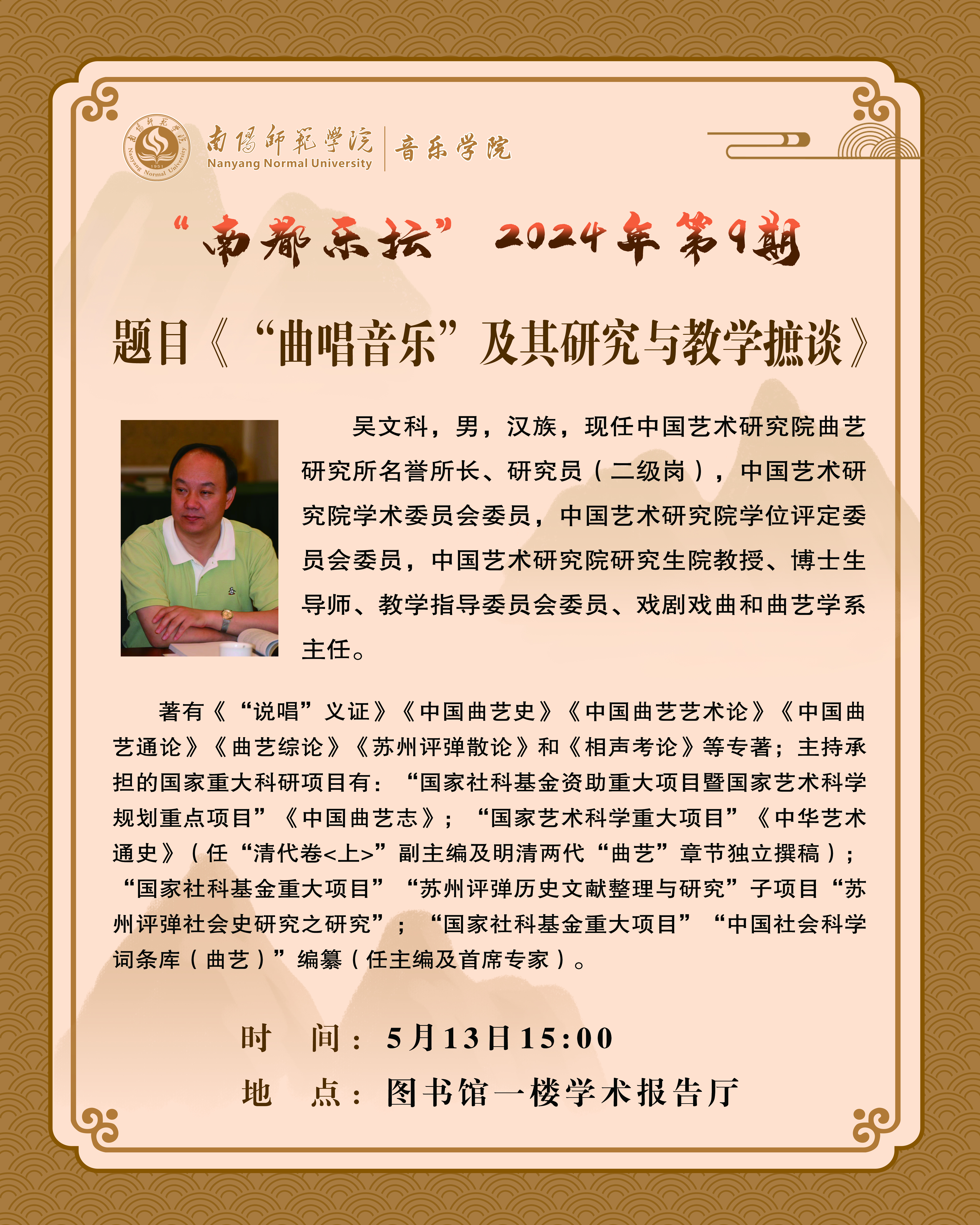 报告题目:“曲唱音乐”及其研究与教学摭谈