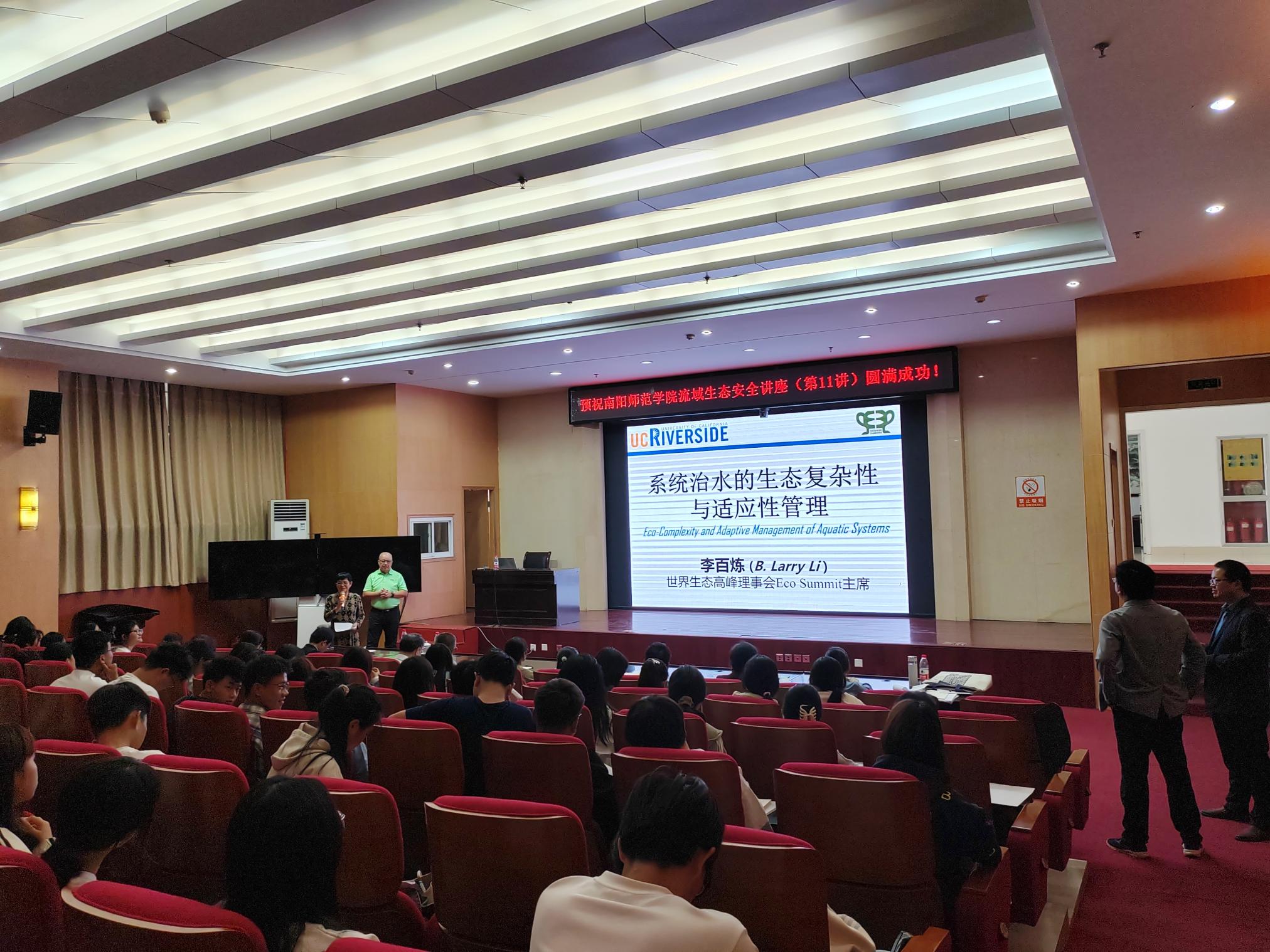 本网讯(邓敏杰 张君/文 邓敏杰 曹家祯/图)10月12日,由南水北调学院暨水资源与现代农业学院、南水北调中线水源区流域生态安全高等学校学科创新引智基地(111基地)主办的天游ty8线路1线路2检测中心流域生态安全讲座(第11讲)在图书馆学术报告厅开讲。美国加利福尼亚大学河滨分校李百炼院士和黄河水利科学研究院王万战正高级工程师分别作了题为“系统治水的生态复杂性与适应性管理”和“黄河河口、密西西比河口及附近海域流场、水质、泥沙输移变化和地貌演变数值模拟”的专题报告。报告会由水资源与现代农业学院院长李玉英主持,相关院系师生200余人参加。