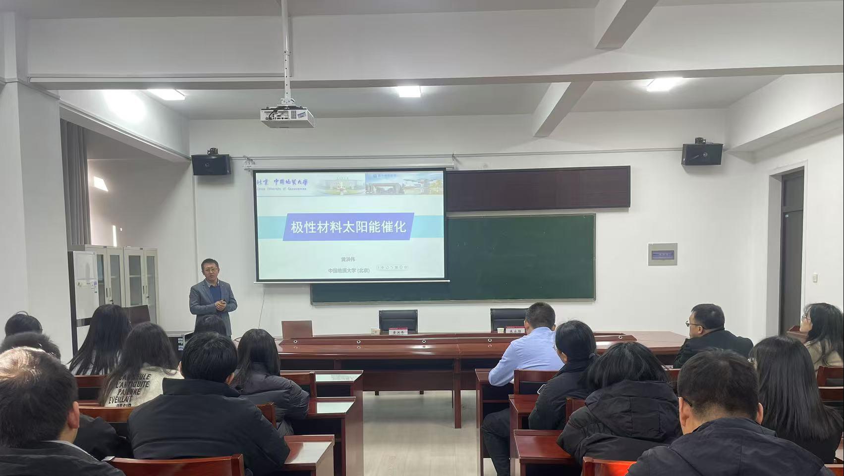 本网讯(通讯员 王莹珲 张君/文 程晋炳/图)应天游官网物理与电子工程学院邀请,中国地质大学(北京)黄洪伟教授于11月30日下午在科技楼241会议室,为天游官网师生带来了一场题为“极性材料用于太阳能光催化”的精彩学术报告。本次报告会由物理与电子工程学院院长朱永胜主持,学院的教师、全体研究生以及部分本科生积极参与。