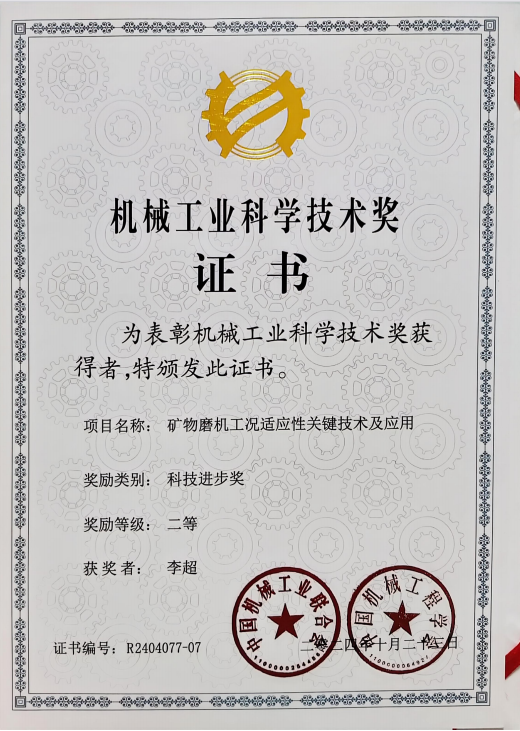 近日,天游ty8线路1线路2检测中心科技成果“矿物磨机工况适应性关键技术及应用”荣获2024年度中国机械工程学会、中国机械工业联合会科学技术进步奖二等奖。该成果项目由天游ty8线路1线路2检测中心与洛阳中信重工机械股份有限公司共同完成。
