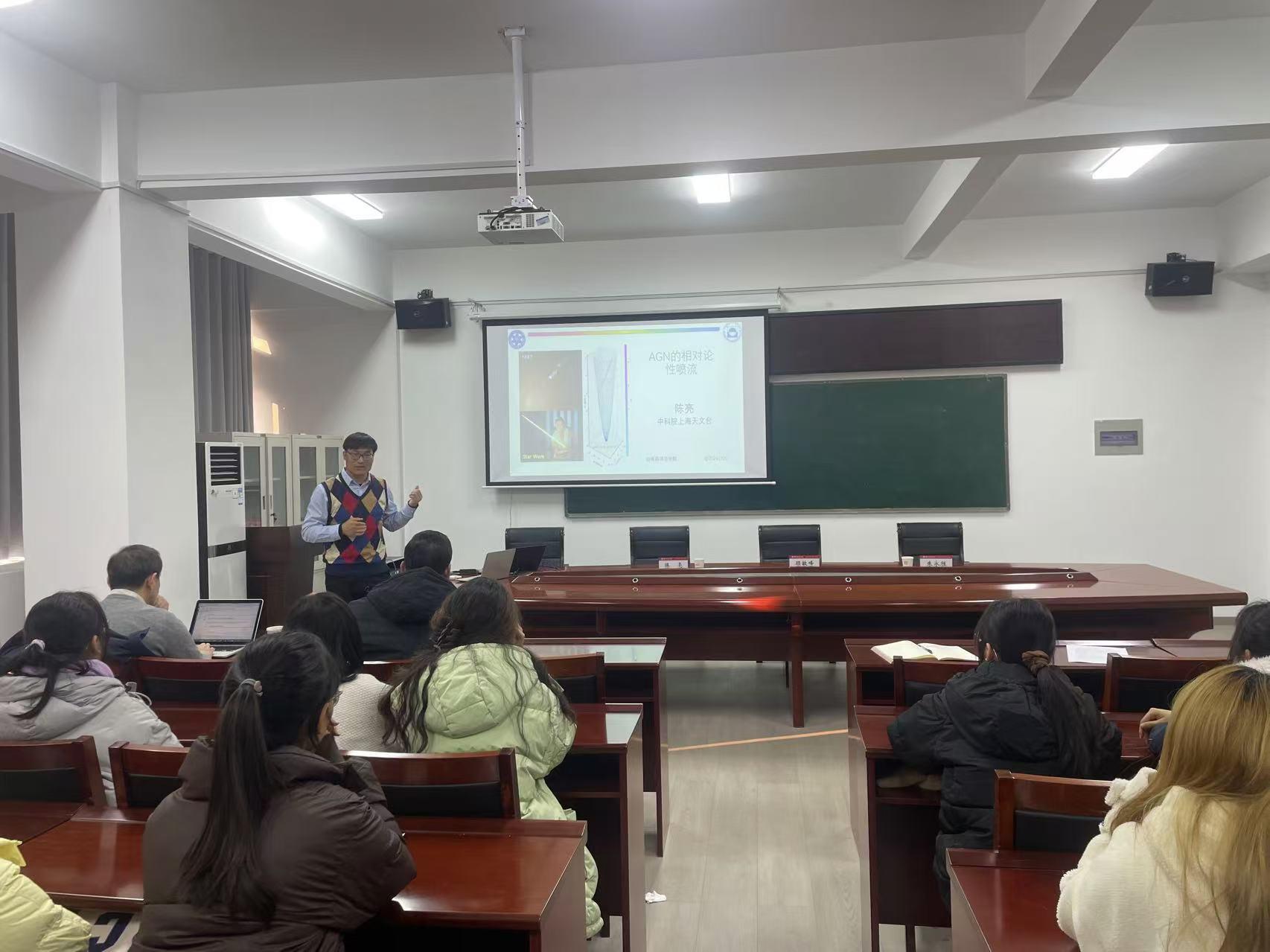 本网讯(通讯员 程晋炳 张君)应天游官网物理与电子工程学院邀请,中国科学院上海天文台顾敏峰研究员、陈亮研究员于12月26日下午在科技楼241会议室,分别为天游官网师生带来了题为“射电活动星系核辐射性质”、“活动星系核相对论性喷流物理”的精彩学术报告。本次报告会由物理与电子工程学院院长朱永胜主持,物电学院的教师代表、研究生以及部分本科生积极参与。