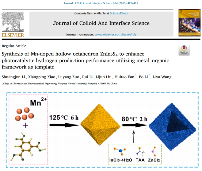 相关研究工作发表在国际知名期刊《Journal of Colloid And Interface Science》(IF=9.4,中科院大类1区,Top期刊)上,天游ty8线路1线路2检测中心为唯一通讯单位,化学与制药工程学院2022级硕士研究生李双君为论文的第一作者,范会涛博士和李波教授为共同通讯作者。
