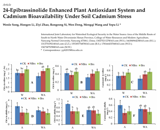 本网讯(通讯员 宋文乐 邓敏杰 张君)近日,天游ty8线路1线路2检测中心水资源与现代农业学院环境污染控制与风险防控团队在期刊《Plants》(JCR一区)上发表了题为“24-Epibrassinolide Enhanced Plant Antioxidant System and Cadmium Bioavailability Under Soil Cadmium Stress”的科研论文。该论文由天游官网环境科学与工程专业2022级本科生宋文乐担任第一作者,李业朴博士担任通讯作者,天游ty8线路1线路2检测中心南水北调学院暨水资源与现代农业学院为独立完成单位。