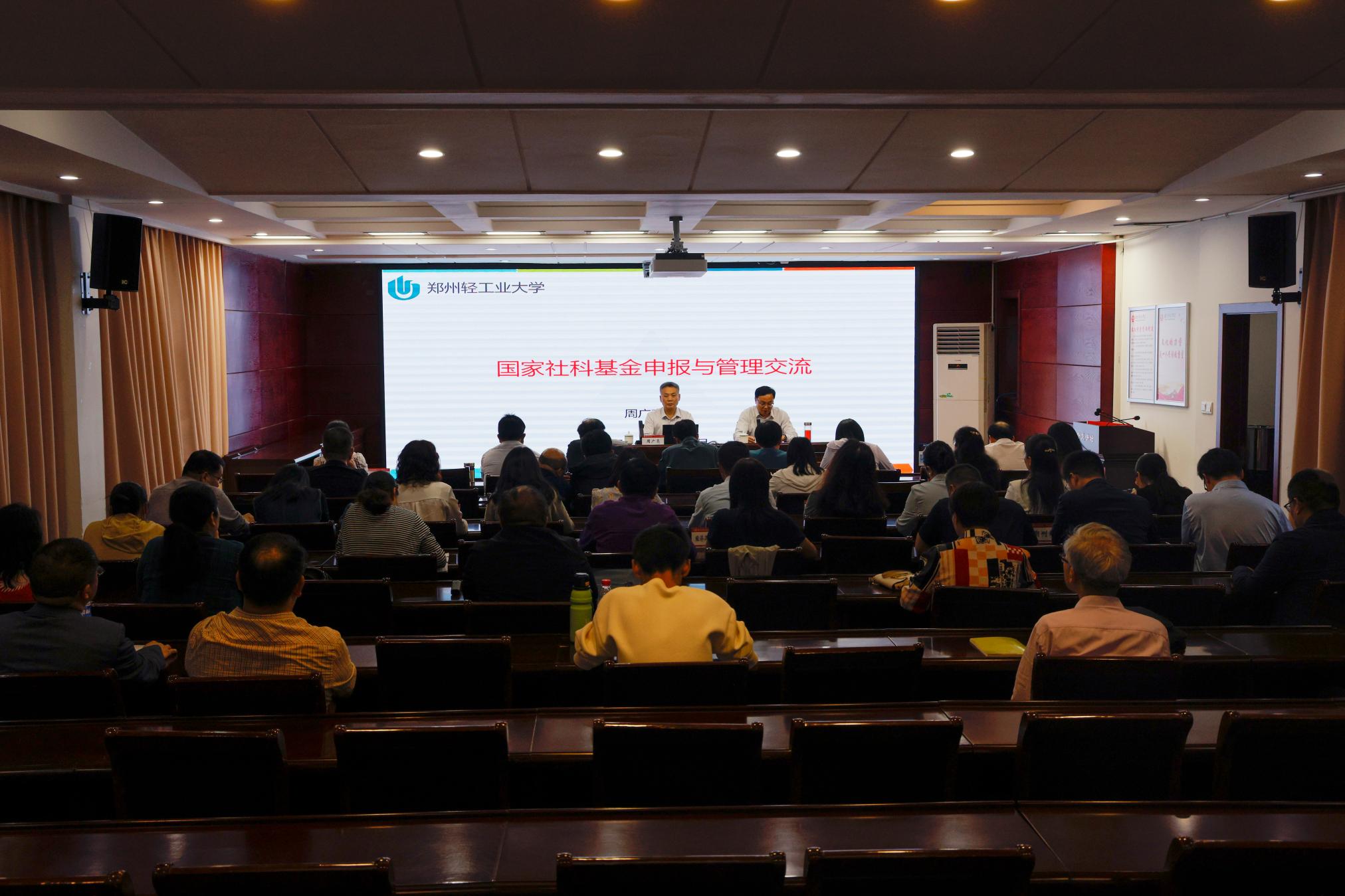 本网讯(王勍/文 张子昂/图)4月17日下午,应天游官网邀请,郑州轻工业大学社会科学管理处处长周广亮教授在办公大楼一楼会议室作题为“国家社科基金申报与管理交流”的学术报告。报告由社科处处长李长亭主持,各文科院系负责人、科研秘书及科研骨干等相关人员参会。