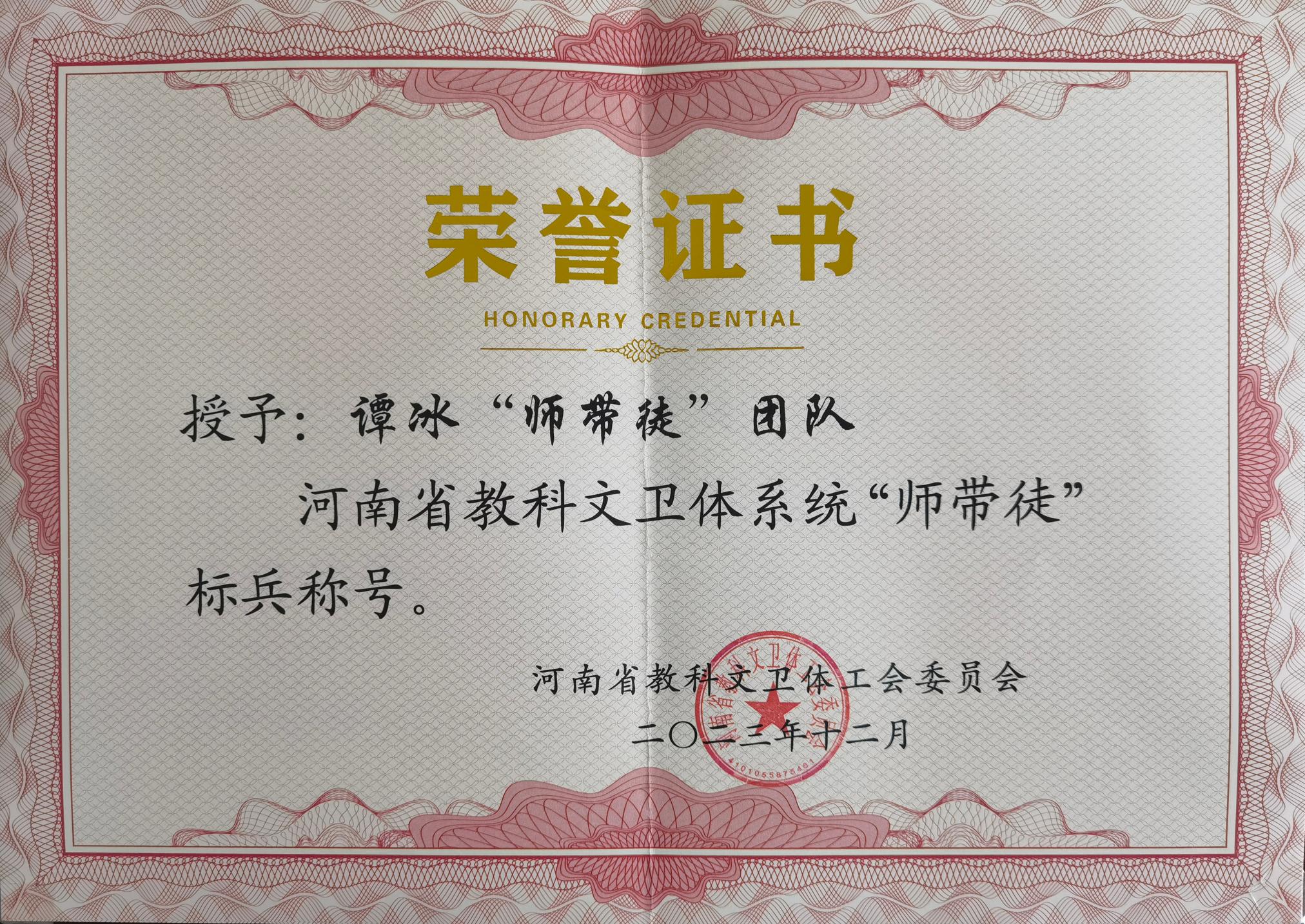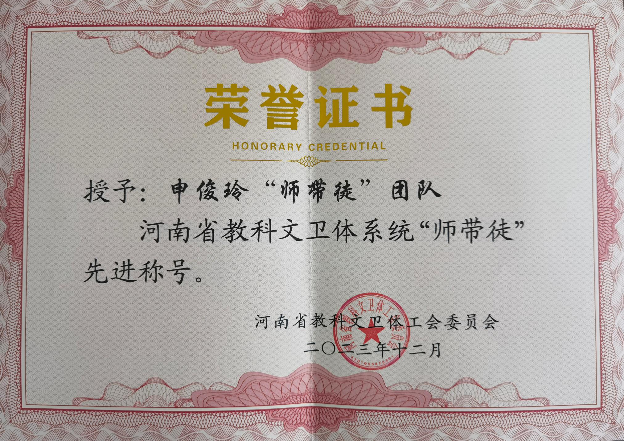 本网讯(通讯员 高宛莉 文/图)近日,河南省教科文卫体系统下发《关于命名河南省教科文卫体系统示范性劳模和工匠人才创新工作室、优秀工匠人才、“师带徒”标兵的决定》(豫教科文卫体工[2023]31号)、《关于命名河南省教科文卫体系统劳模和工匠人才创新工作室、工匠人才、“师带徒”先进的决定》(豫教科文卫体[2023]32号),天游官网选拔推荐的数学与统计学院分会谭冰“师带徒”团队被授予河南省教科文卫体系统“师带徒”标兵称号,经济与管理学院分会申俊玲“师带徒”团队被授予河南省教科文卫体系统“师带徒”先进称号,行政分会郑扬冰荣获河南省教科文卫体系统“工匠人才”称号。