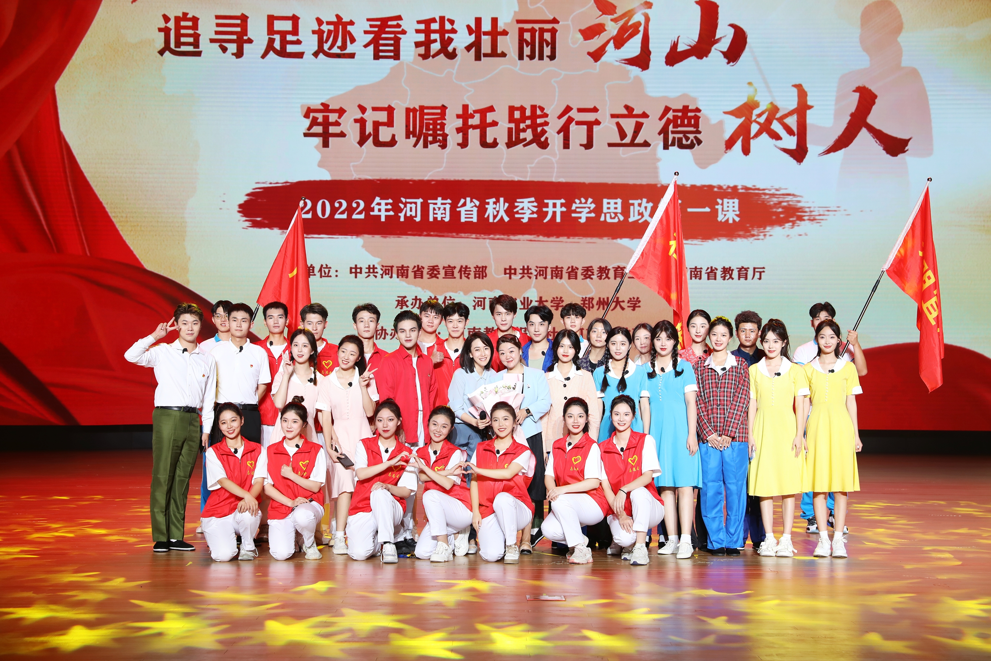 本网讯(通讯员 黄玉蕊 图/文)9月15日,由中共河南省委宣传部、中共河南省委教育工委、河南省教育厅主办,郑州大学、河南农业大学承办的以“追寻足迹看我壮丽河山,牢记嘱托践行立德树人”为主题的2022年河南省秋季开学思政第一课在河南农业大学举行。本次活动点赞量超1.5亿次,329.3万师生“云端”齐聚! 新华社、河南卫视《河南新闻联播》、河南日报、今日头条、凤凰新闻、郑州日报等多家媒体平台及客户端相继报道。