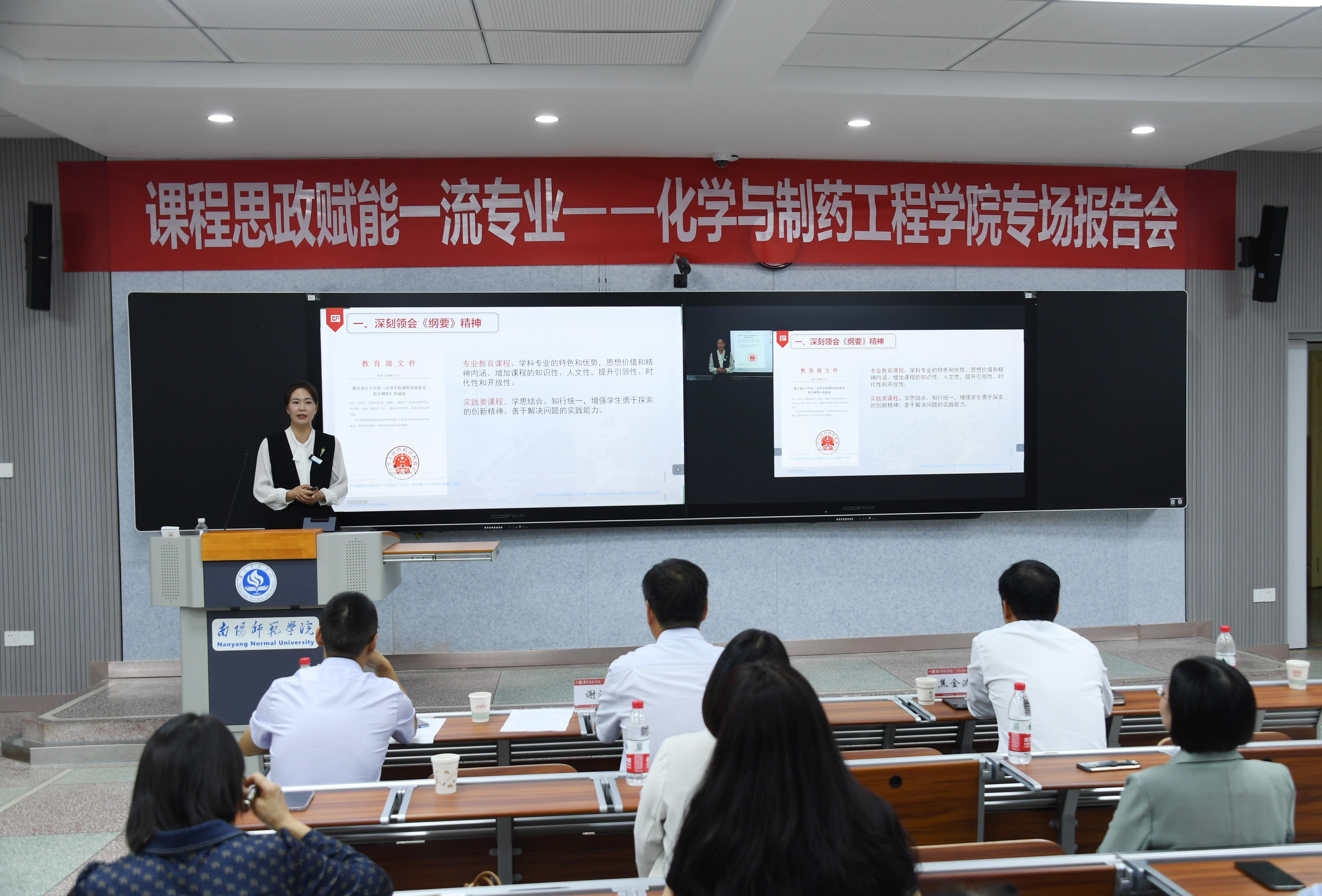 本网讯(郭欣/文 王赛赛/图)9月28日下午,天游官网课程思政教学研究示范中心成立暨“课程思政赋能一流专业”化学与制药工程学院专场报告会在综合楼101智慧教室举行。教务处、马克思主义学院负责人和教师代表、化学与制药工程学院领导班子成员和全体教师参加会议。