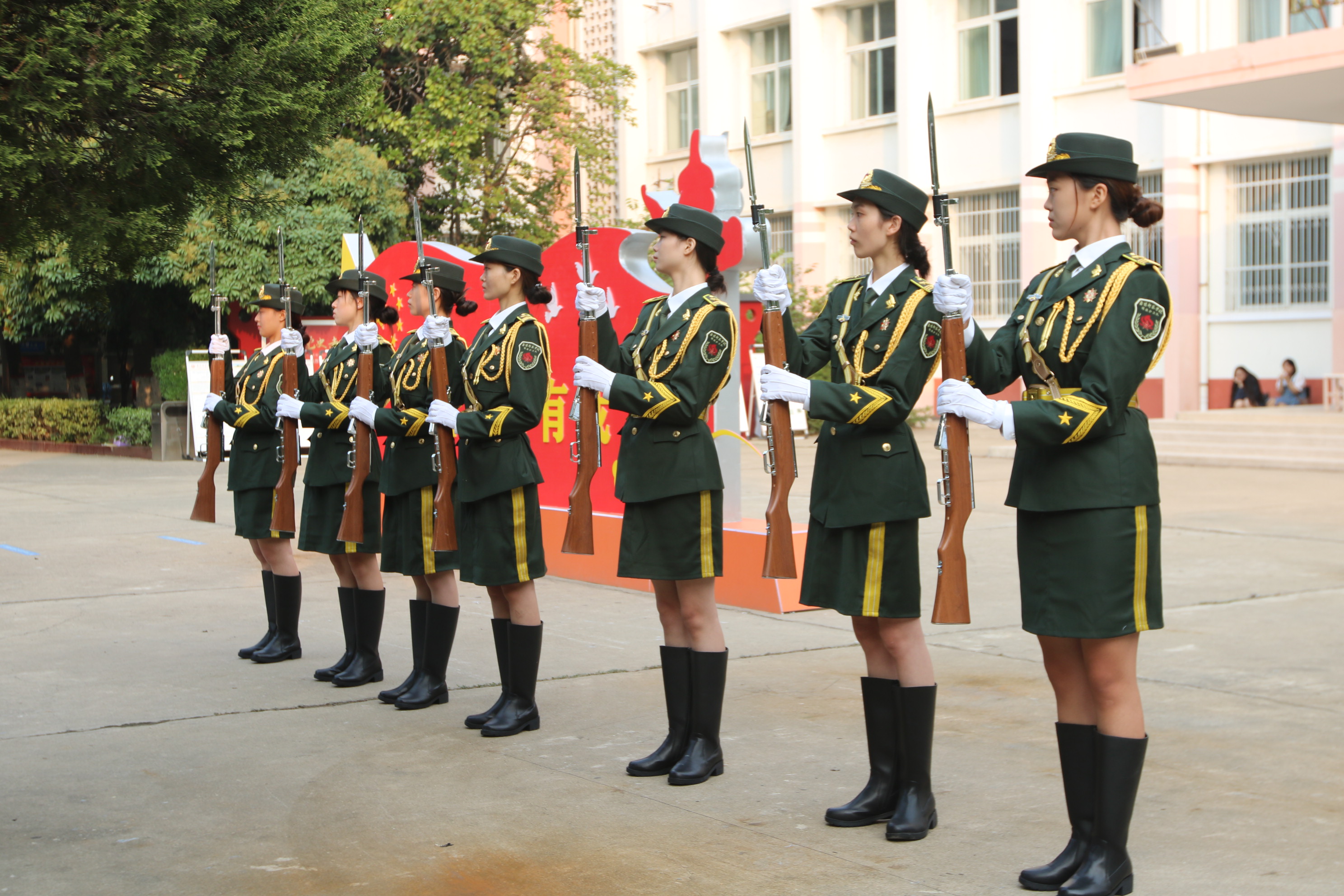 升旗仪式上,国防教育协会国旗护卫队的队员们身着军装,精神抖擞,迈着矫健的步伐阔步向前。在阵阵铿锵有力、整齐划一的方步声中,国旗护卫队以饱满的热情护卫着鲜艳的五星红旗来到升旗台前。伴随着雄壮嘹亮的《义勇军进行曲》,全体人员庄严肃立,面向缓缓升起的国旗行注目礼。升旗仪式结束后,在场学生纷纷表示要刻苦学习,以振兴中华为己任,把小我融入大我,为实现中华民族伟大复兴的中国梦贡献青春力量。