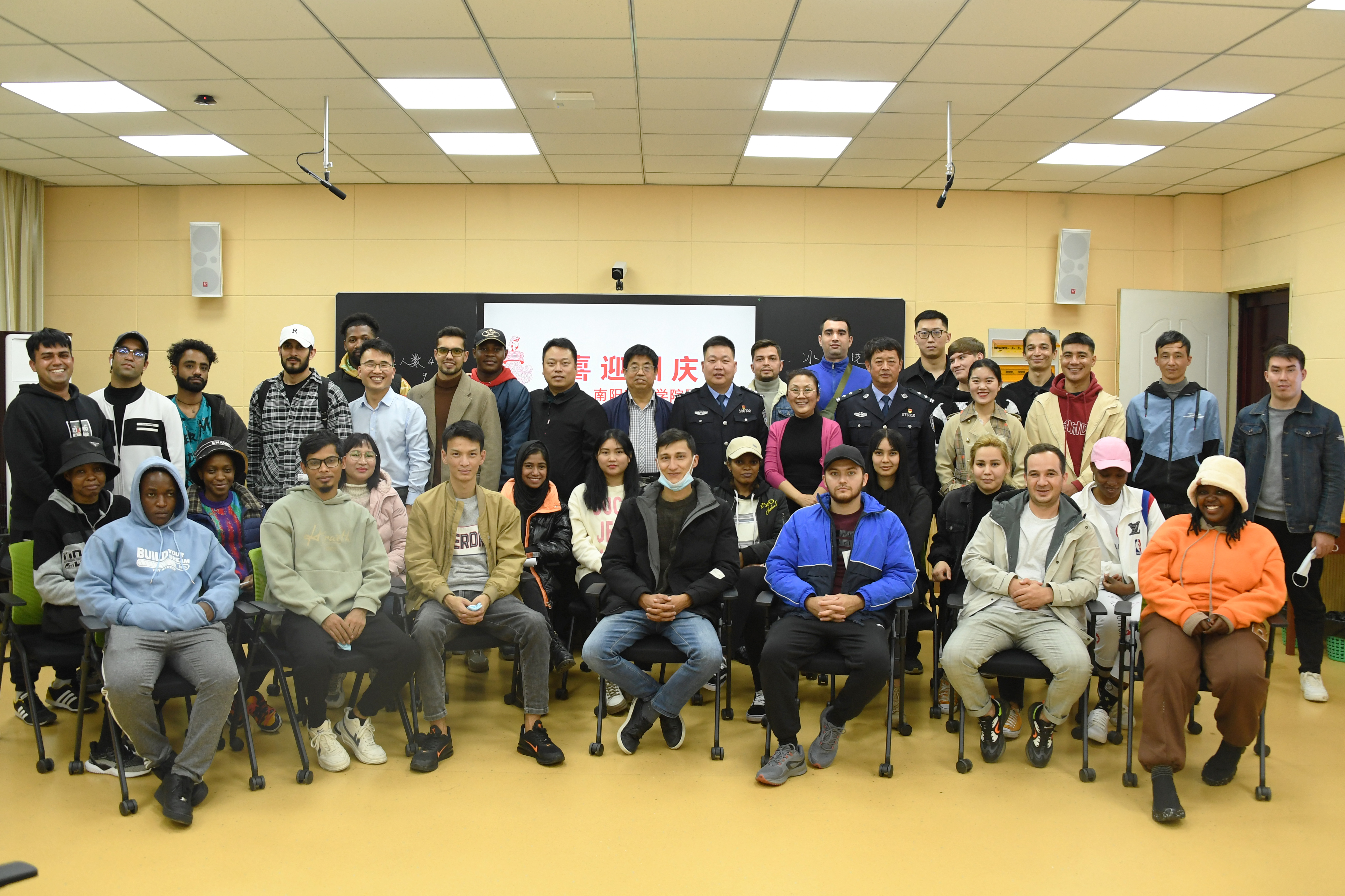 曹路漫致欢迎辞。从“儿行千里母担忧”引出学校和母亲一样时刻关心关注同学们的身心健康安全,从“入乡随俗”“既来之则安之”讲到来华国际学生要遵守中国的法律、中国的疫情防控政策和学校的校规,习惯学校生活,努力学习,早日成为会通中外的国际人才。