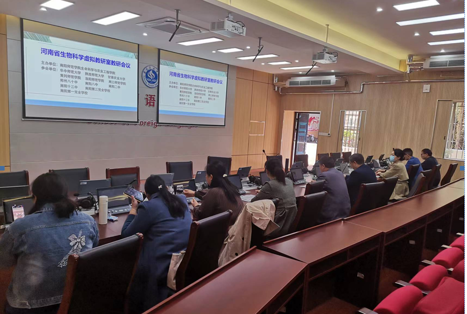 本网讯(姚伦广/文 鲁云风/图)为提高生物科学专业的人才培养质量,保障虚拟教研室的建设质量,10月17日上午,河南省生物科学虚拟教研室召开教学研讨会。本次会议采用线上线下相结合的方式进行,华中师范大学、陕西师范大学、甘肃农业大学、黄冈师范学院、洛阳师范学院、周口师范学院等六所高校教师及郑州八十中、南阳八中、南阳十三中等教学实践基地代表近30名教师、专家参加此次会议。