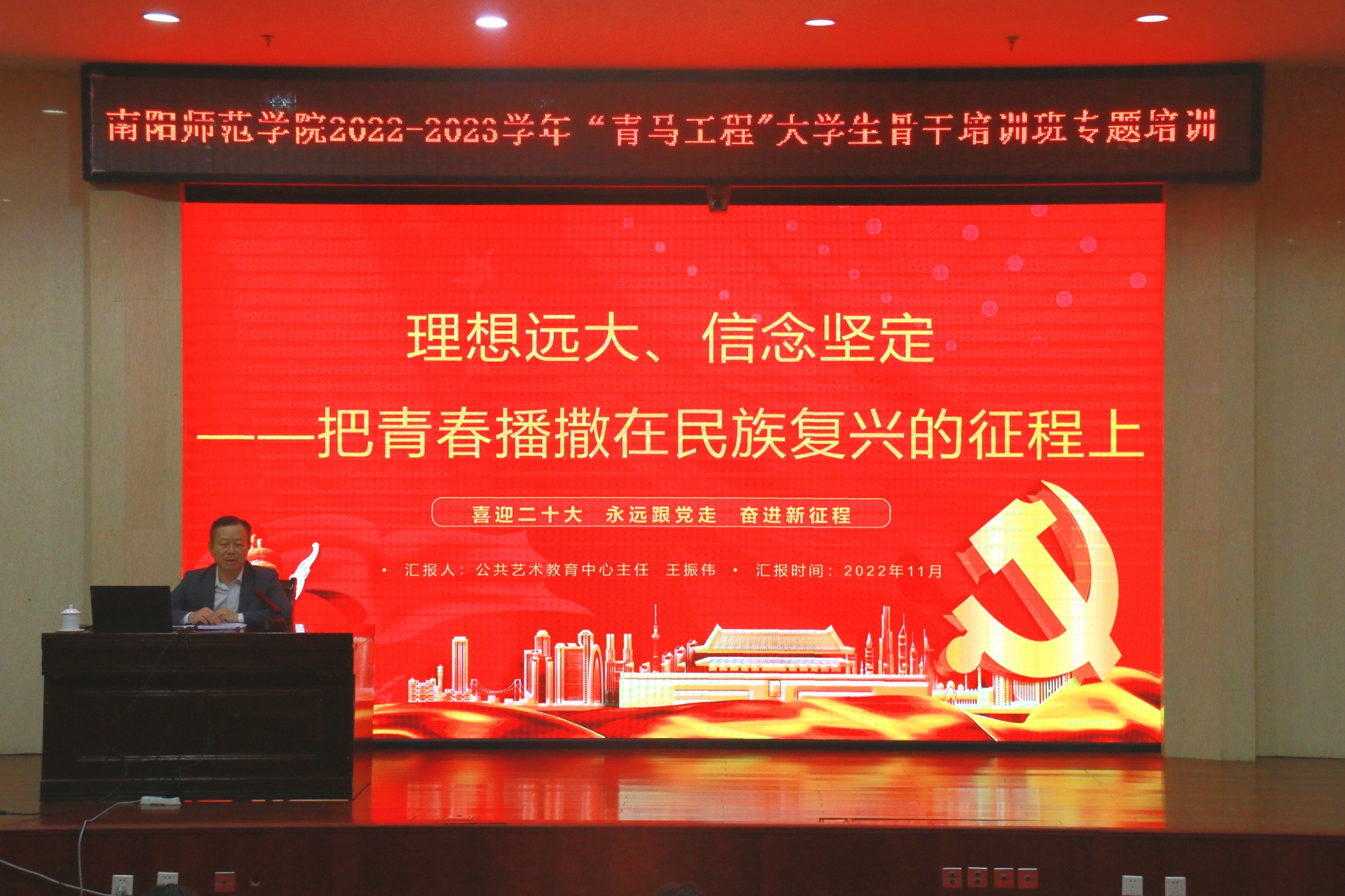 本网讯(李珂 陈秀凤/文彭雨欣/图)11月2日下午,天游官网在西区图书馆一楼报告厅开展“学习二十大 奋进新征程”“青马工程”大学生骨干培训会。南阳日报社热线部主任、政务新媒台副台长王蕾,公共艺术教育中心主任王振伟担任主讲,校级及各二级学院青马骨干学员参加。