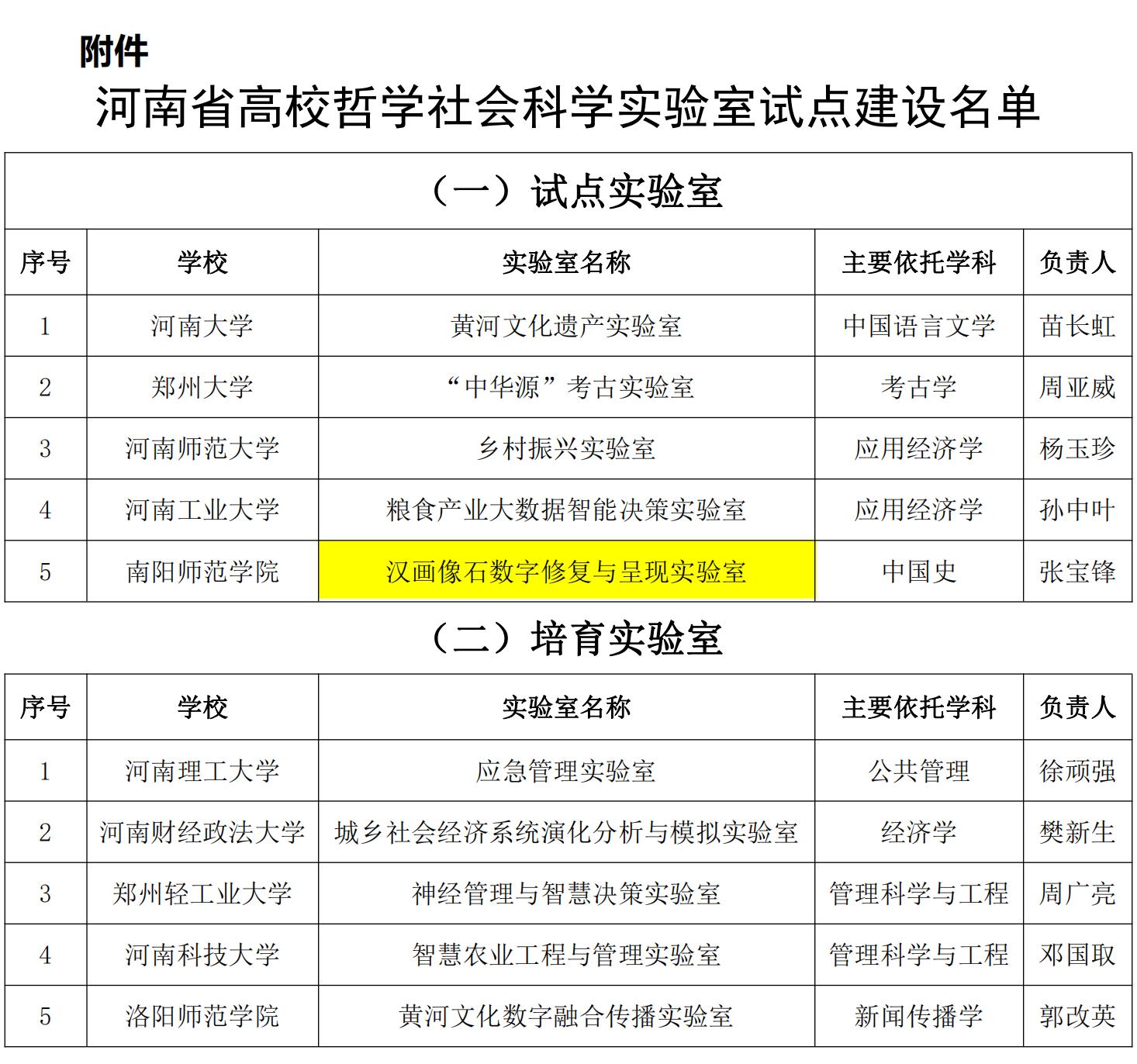 本网讯(通讯员 张恒杰)近日,《中共河南省委教育工委河南省教育厅关于公布河南省高校哲学社会科学实验室试点建设名单的通知》(豫教工委办〔2022〕145号)下发,公布了河南省首批拟支持建设的5个高校哲学社会科学试点实验室。天游官网“汉画像石数字修复与呈现实验室”获批,彰显了天游官网近年来在汉文化学科群建设方面取得的可喜成绩。