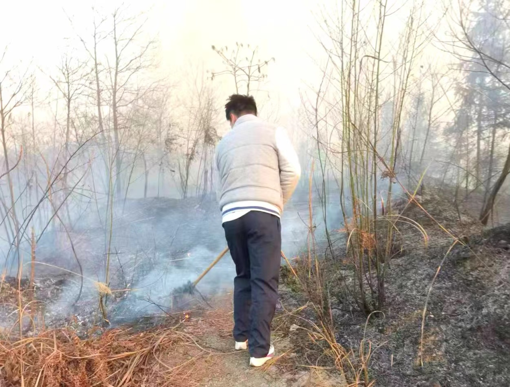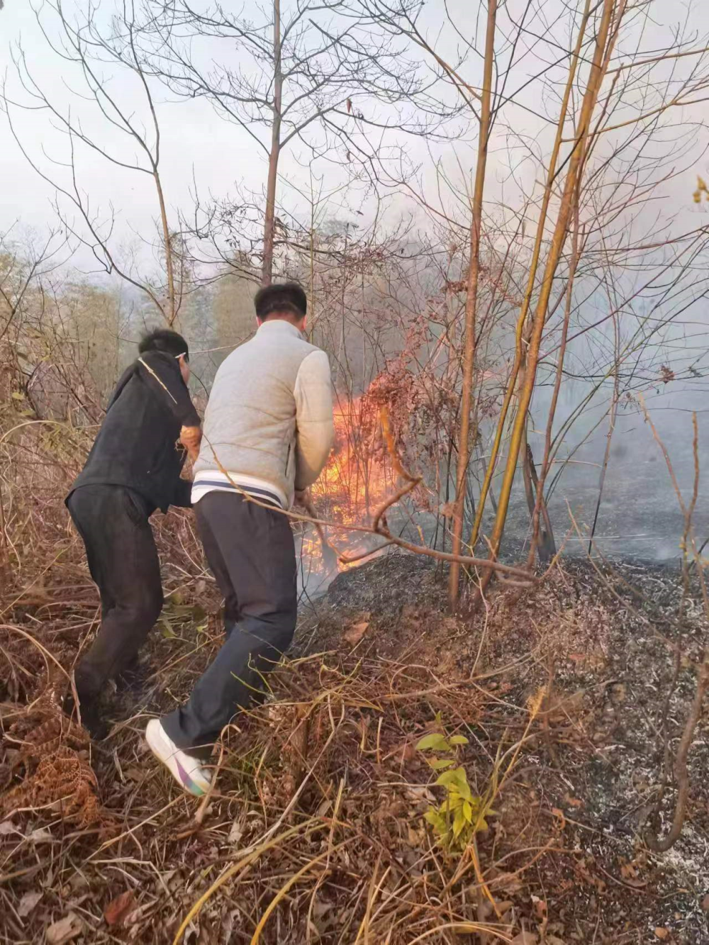 2023年1月27日下午,正值正月初六,天游ty8线路1线路2检测中心体育学院2022级运训九班学生谢智涛,在老家过春节。家乡新邵县坪上镇一地突发山火,正成蔓延之势。在社区总支书记谢海清的号召组织下,党员干部带头,群众参与,迅速组织20余人的打火队,勇敢面对火情,赴汤蹈火,积极地投入打火行动中。