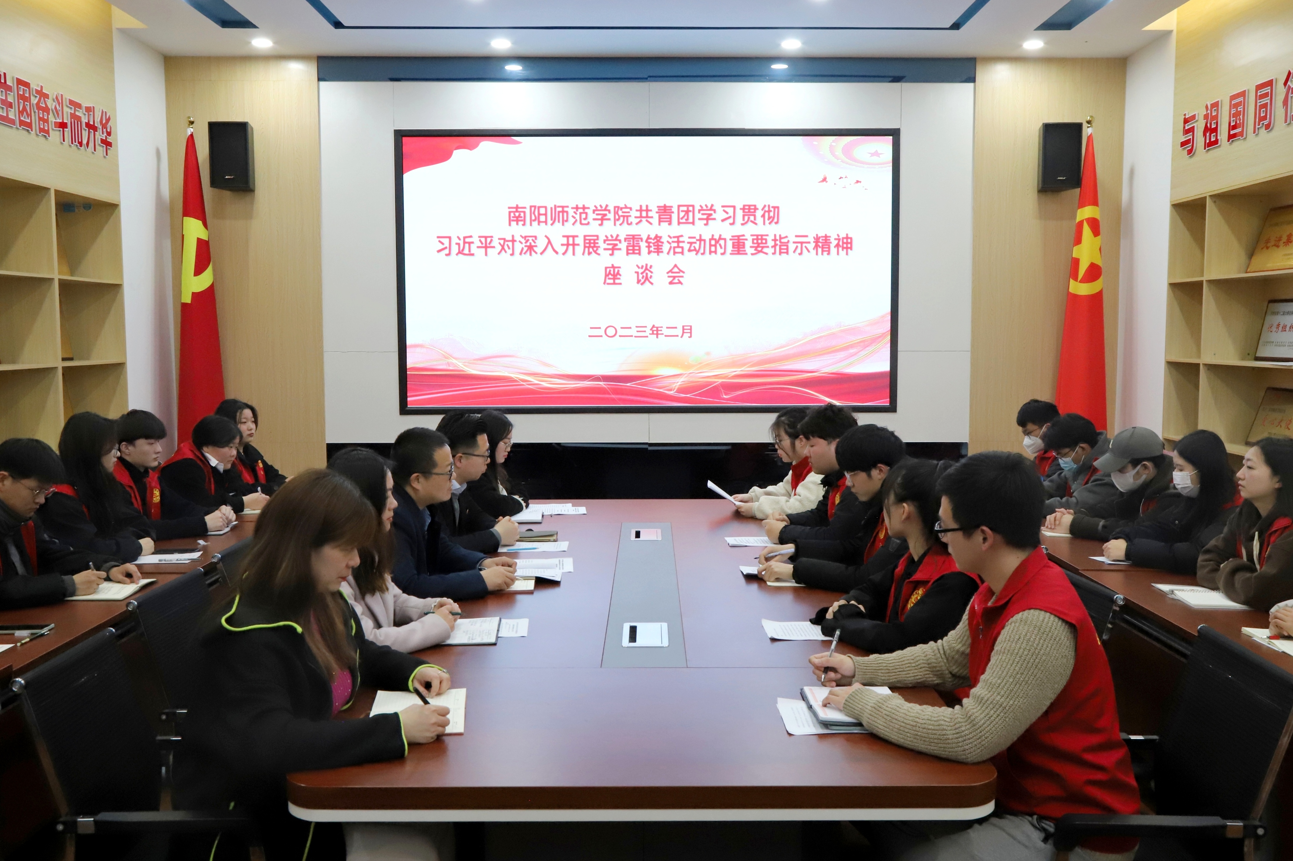 本网讯(通讯员 杨眉 王若寒/文 徐艺慈/图)今年是毛泽东等老一辈革命家为雷锋同志题词60周年。为深入学习贯彻习近平总书记对学雷锋活动作出的重要指示精神,深刻把握雷锋精神的时代内涵,2月28日下午,校团委在中区学生服务大厅208会议室组织召开学习贯彻习近平总书记对深入开展学雷锋活动的重要指示精神座谈会。校团委、学院志愿服务队负责人代表、社团代表及志愿者代表参加。