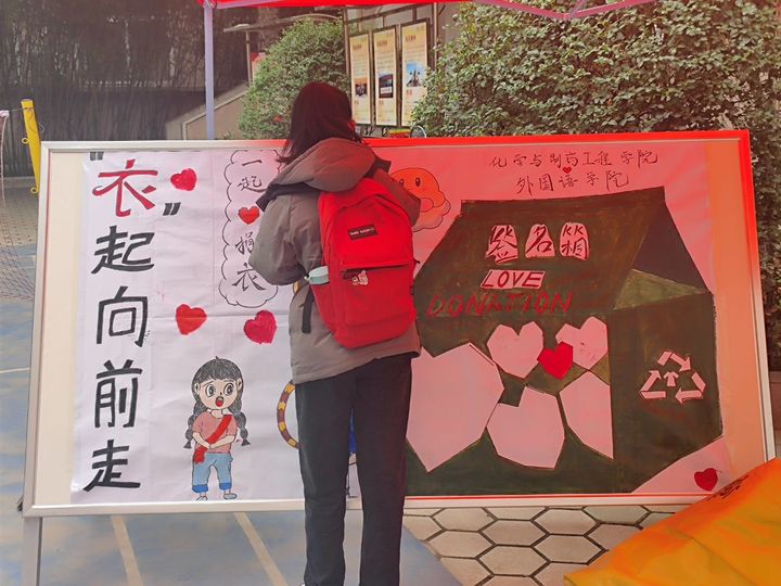 2月25日至26日,化学与制药工程学院在校内开展爱心捐衣活动。志愿者们通过展板宣传、回馈礼品等方式进行活动宣传,同学们将清洗干净的衣物在指定地点交于志愿者统一整理汇总,寄往偏远地区,帮助有需要的人。