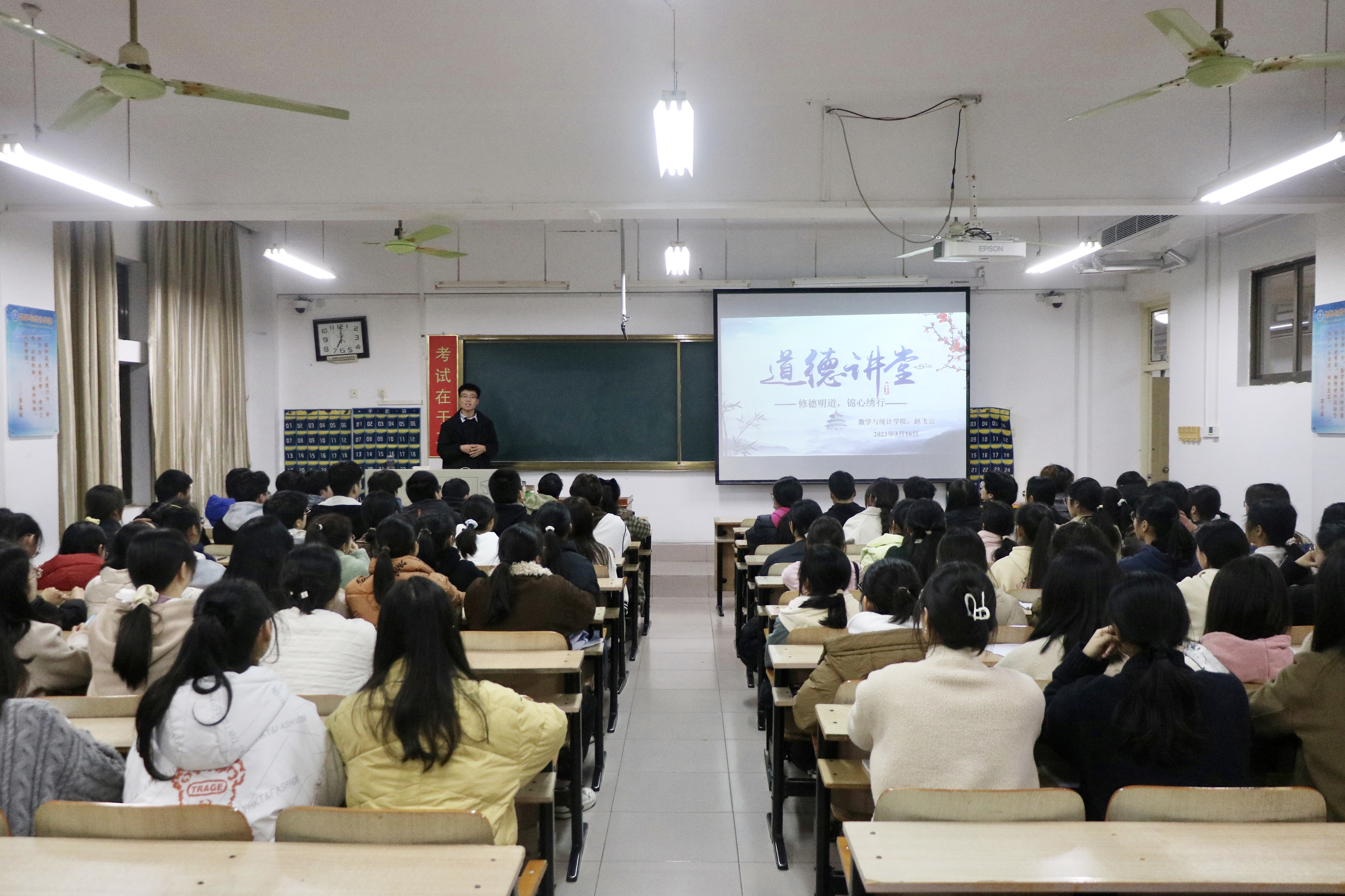 本网讯(陈欣 杨芯惠/文 杨毅鑫/图)3月22日,天游官网以“修德明道,锦心绣行”为主题的第200期道德讲堂在逸夫教学楼S505举行。本次活动由数学与统计学院辅导员赵飞云主讲。该学院2022级学生参加。