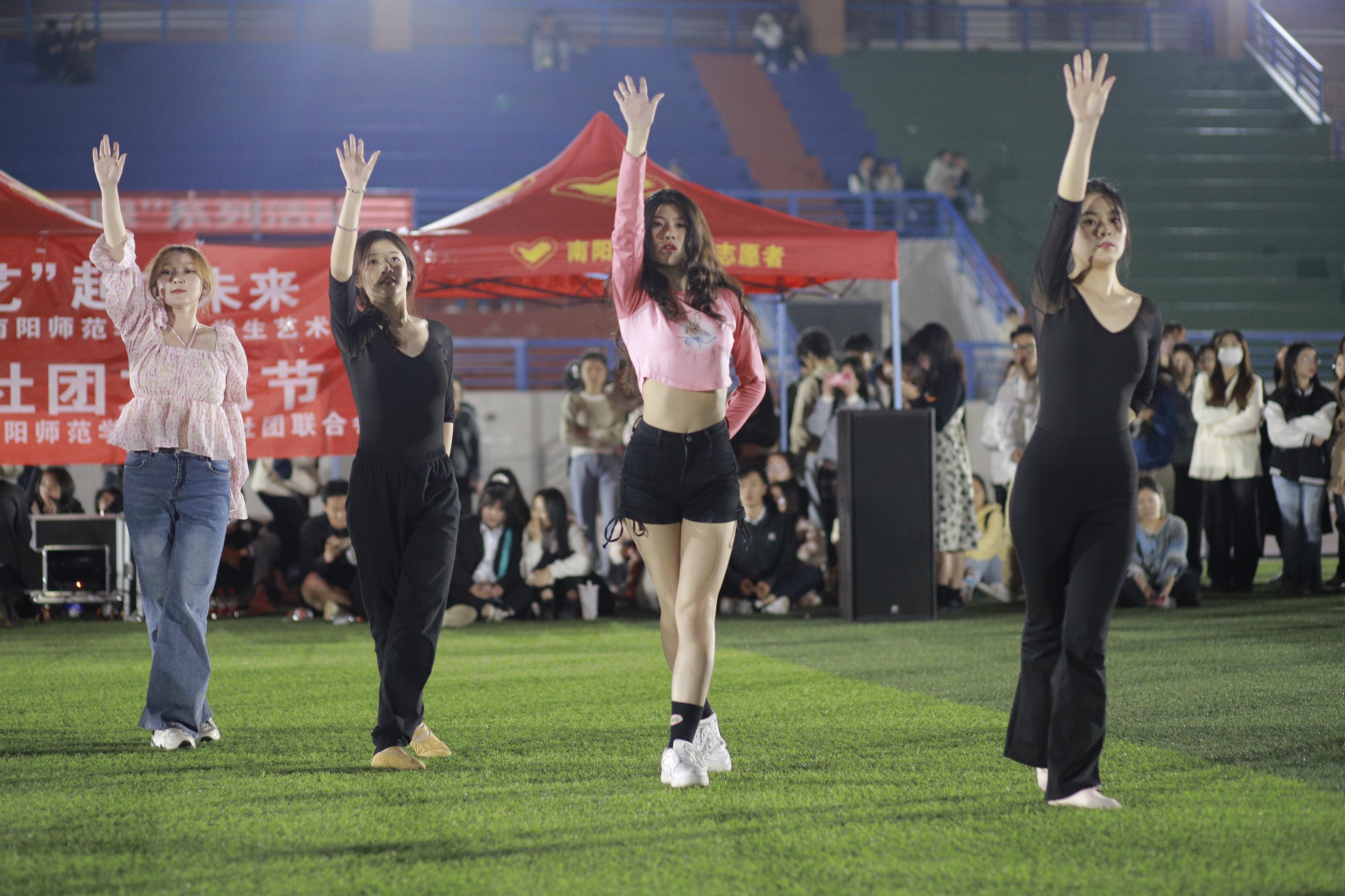 3月31日,体育舞蹈社团与大学生艺术团在中区田径场联合开展“青春要有YOUNG‘艺’起向未来”演出活动。节目精彩纷呈,歌手舞者朝气蓬勃,观看同学们的喝彩声、鼓掌声不断。