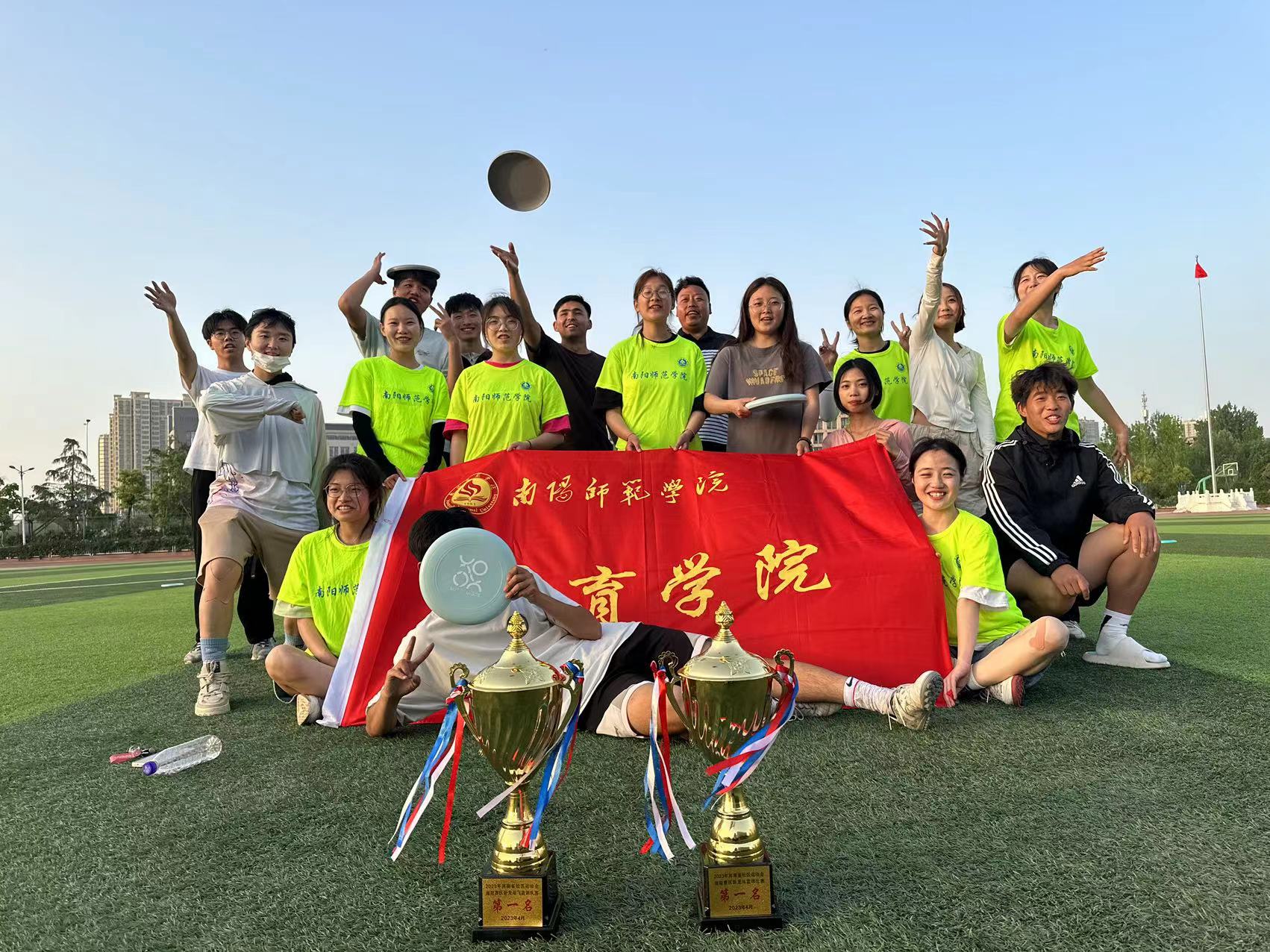 本网讯(通讯员 杨飞)4月16一17日,2023年河南省社区运动会南阳赛区卧龙站在宛西社区举办。天游ty8线路1线路2检测中心学子获得本次比赛飞盘项目第一名的好成绩。