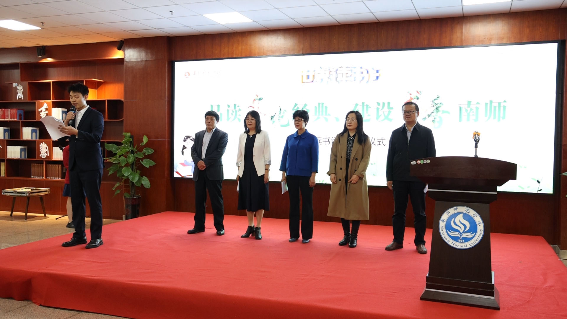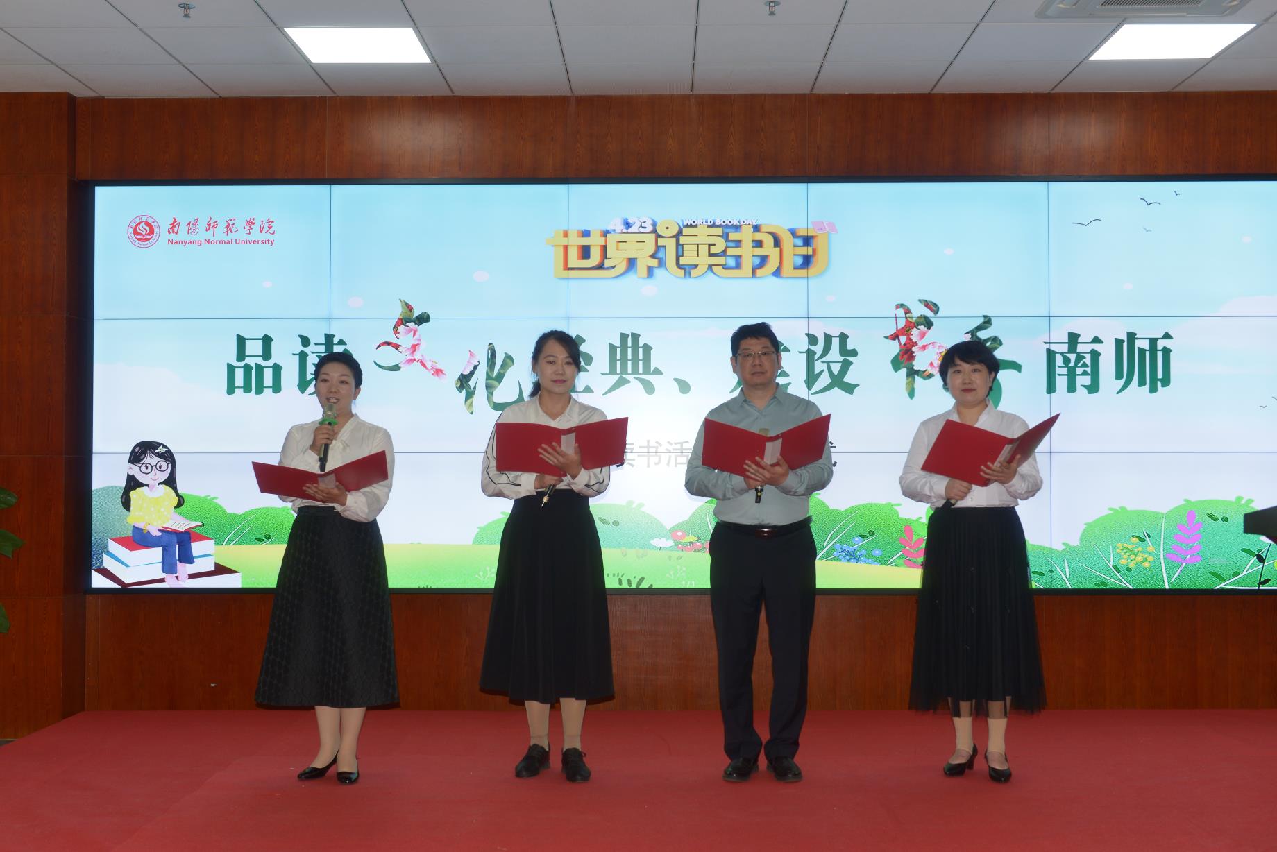 党委宣传部部长时树菁致辞。她高度赞扬了图书馆长期以来坚持不懈开展读书活动、为推动校园文化建设做出的突出贡献,呼吁同学们在继承传统文化的基础上开拓创新,为南阳师院营造良好学风和人文环境作出不懈努力。