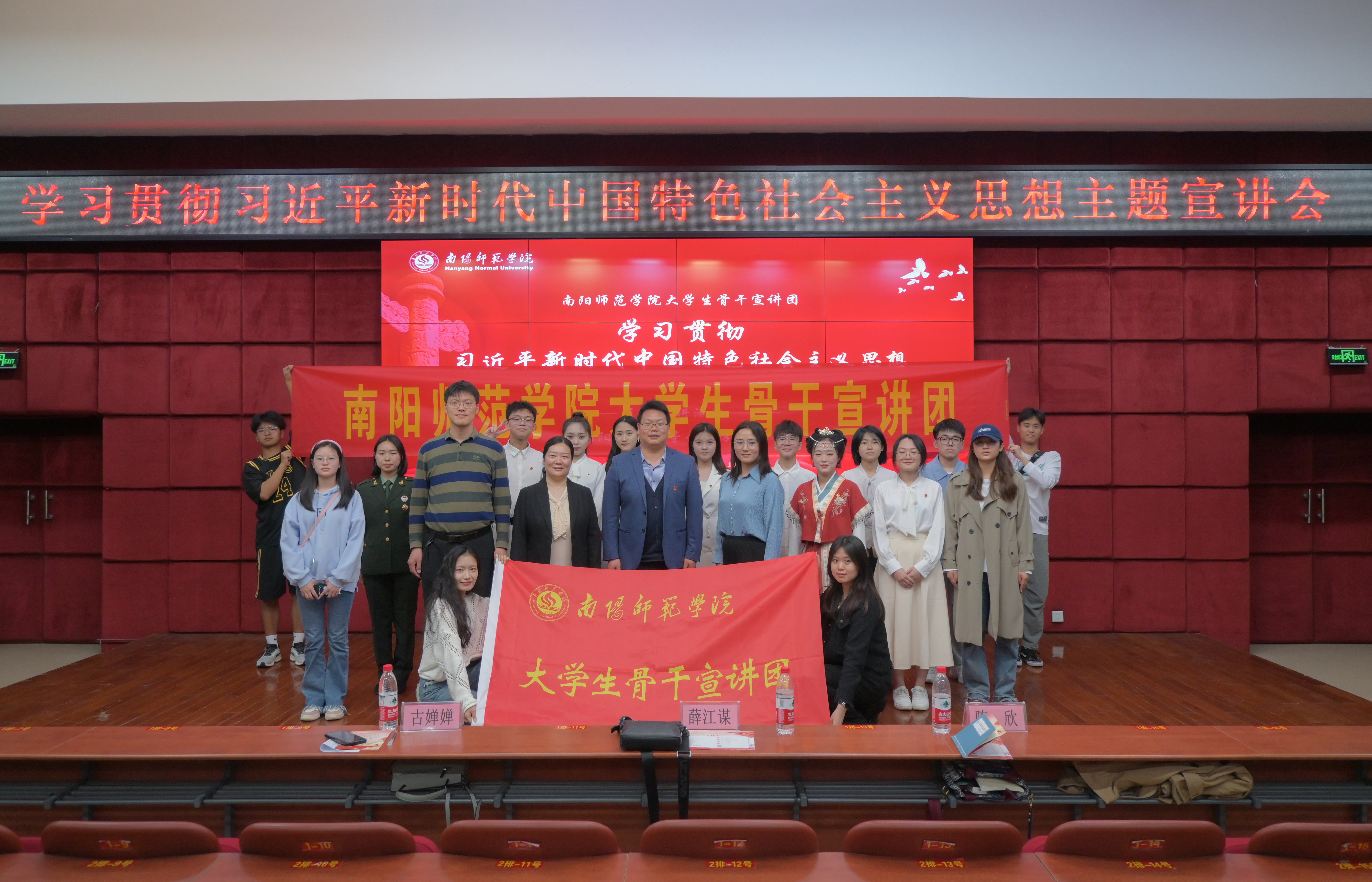 本次活动由宣讲团指导老师薛江谋、陈欣带队,宣讲团九位成员依次登台,结合各自专业与生活阅历,分别从党建引领、文化自信、依法治国、建设美丽中国等不同视角,用大学生喜闻乐见的青言青语,生动解读习近平新时代中国特色社会主义思想的内涵要义,赢得了现场观众的阵阵掌声。