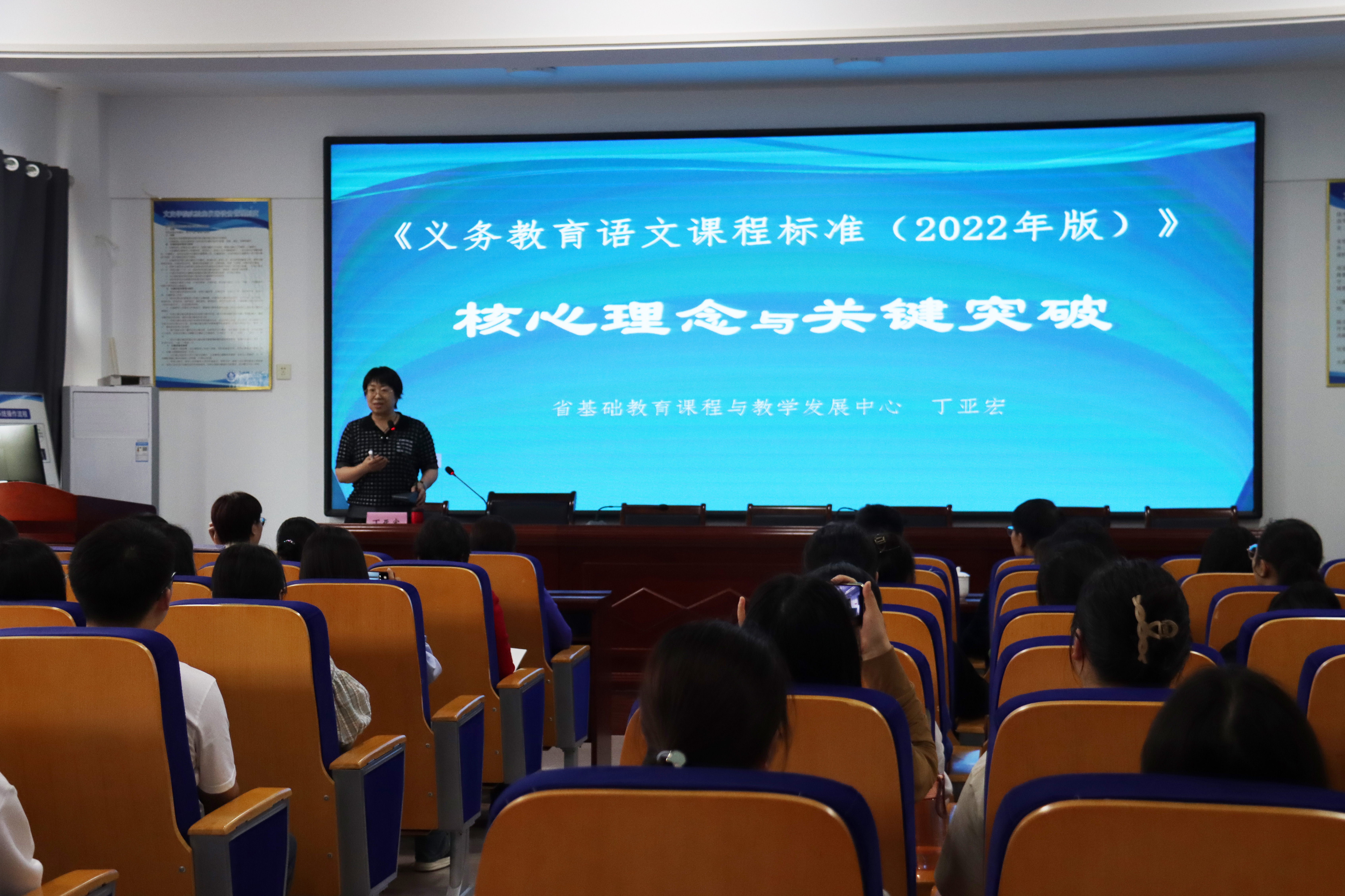 本网讯(通讯员 徐恒升 图/文)为贯彻落实《义务教育课程方案和课程标准(2022年版)》,推进新时代义务教育改革,提升义务教育质量,为基础教育不断培养优秀的未来新教师、培训各类在职教师,5月26日,教师发展中心邀请河南省基础教育教学研究室教育科研管理部主任、中学语文特级教师、正高级教师丁亚宏,在逸夫楼305教室举办第二十四期教师工作坊——“《义务教育语文课程标准(2022年版)》核心理念与关键突破”专题培训。本期工作坊由文学院承办,文学院师生80余人参加培训。