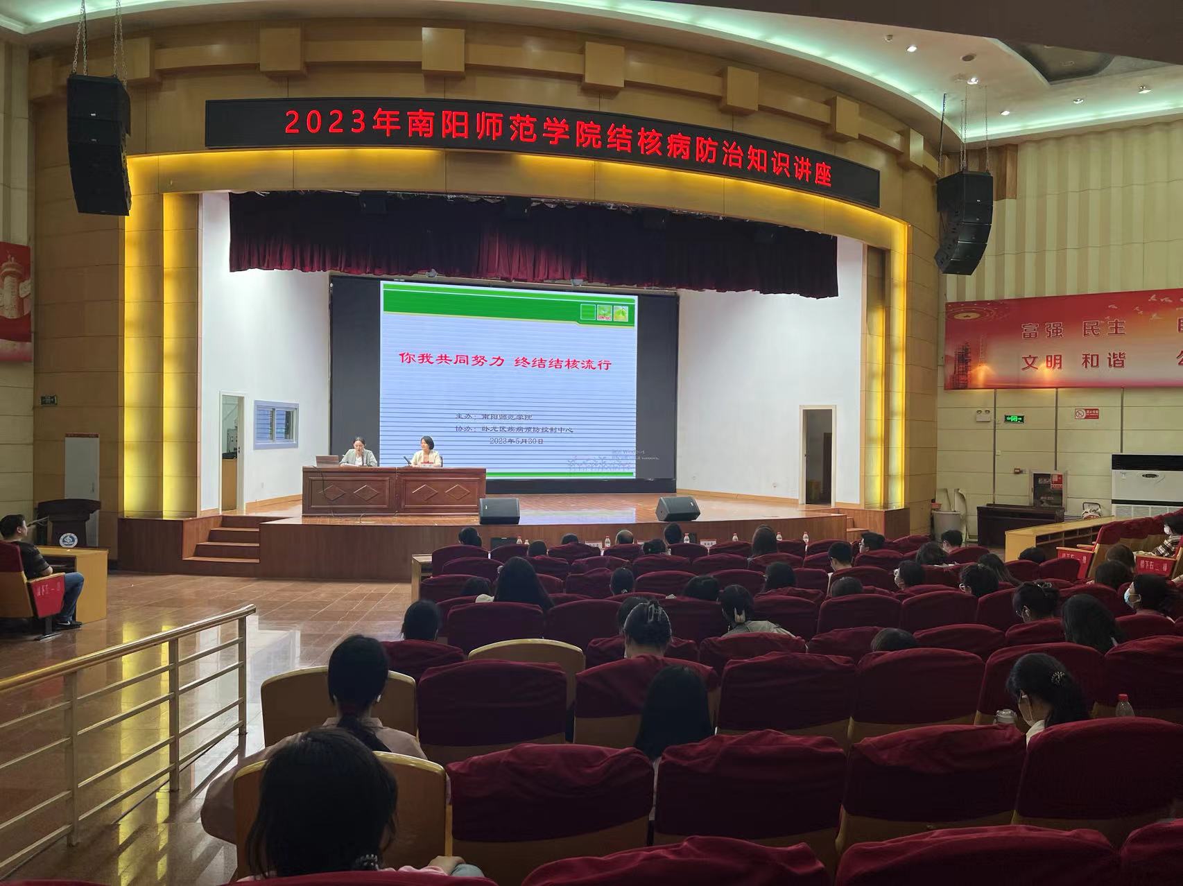 在东区演播厅,学校开展以“你我共同努力,终结结核流行”为主题的知识讲座。卧龙区疾控中心结核病防控专家刘颖从结核病的常见症状、流行趋势、学校结核病的疫情特点、防控方法、治疗政策等方面作了精彩报告,让同学们更好了解自身健康情况,引导大家积极建立自我保护意识和和谐的人际交往关系。