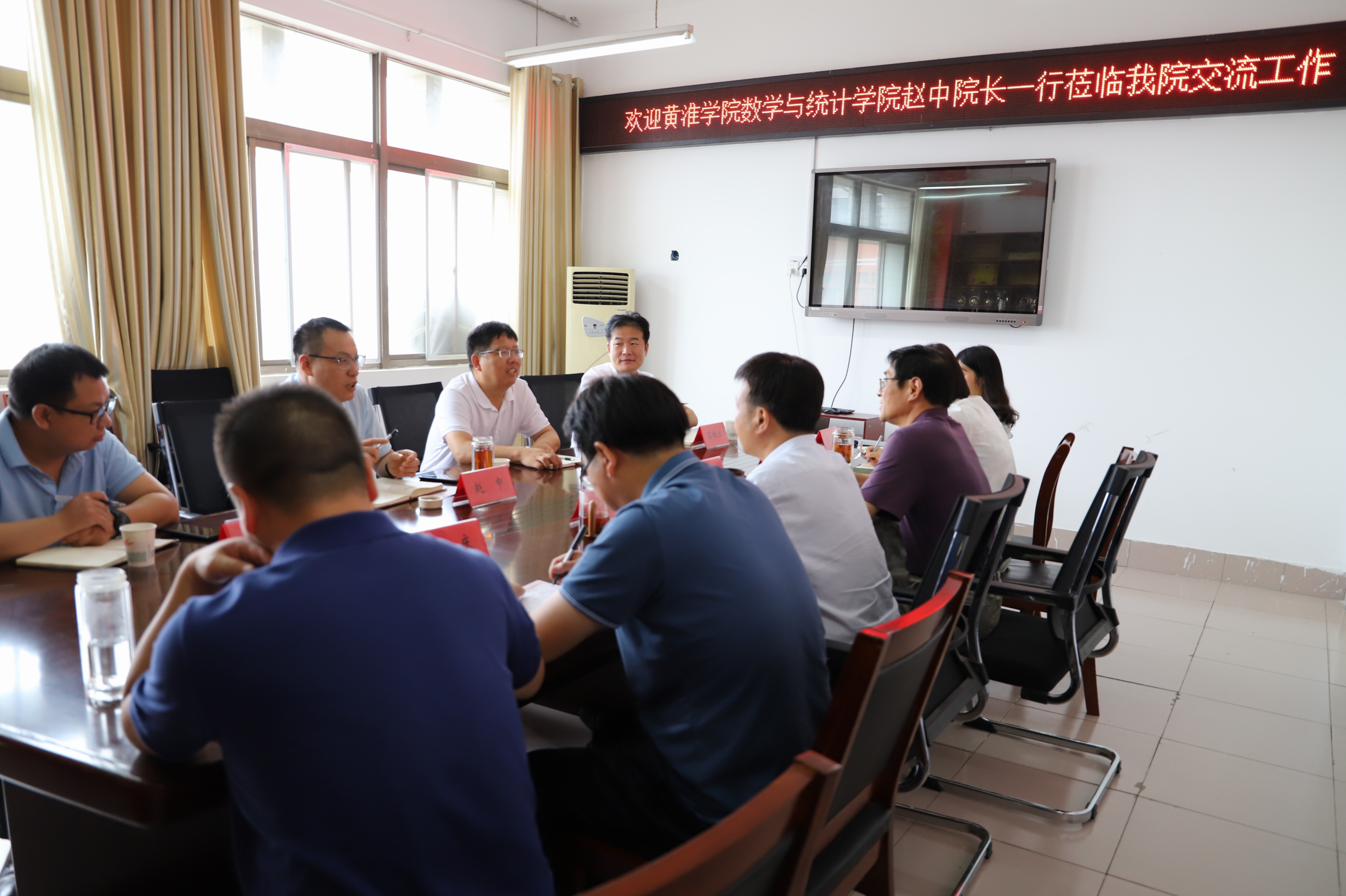 本网讯(虎大力/文 张露涵/图)为促进省内高校之间的合作交流,共享学科建设和人才培养经验,6月17日下午,黄淮学院数学与统计学院一行4人到天游官网交流工作,会议在逸夫楼C507举行。数学与统计学院负责同志及骨干教师参加。会议由数学与统计学院院长王顺钦主持。